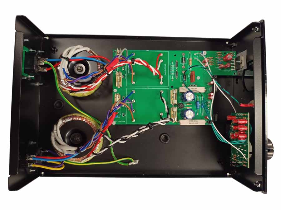 The unit uses an entirely analogue circuit with no DSP, Class D or switch-mode technology. This approach is designed to provide a stable, low-noise waveform for turntable motors.