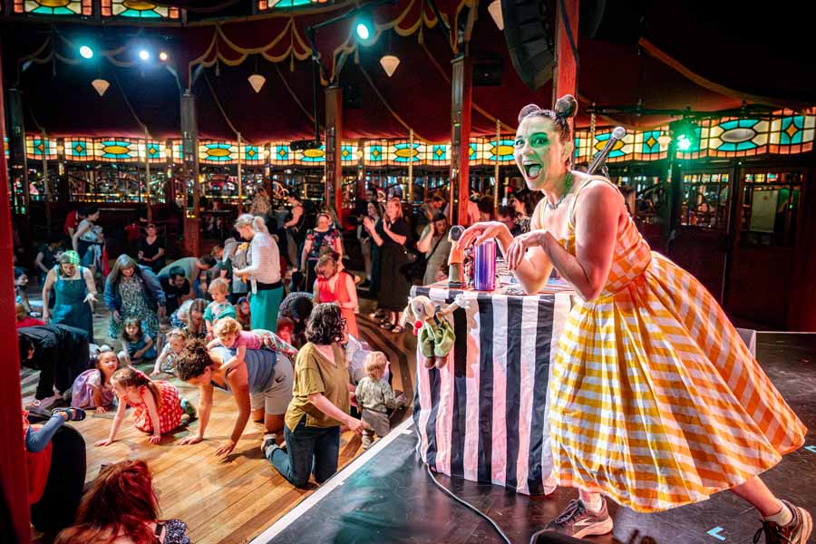 First of all, let me put on record my complete admiration for any parents who can get their under-fives up, dressed, fed, and out into the middle of town by 10:00 am on a Saturday morning while retaining the energy to boogie with their beloved offspring for an hour. Even a hard-hearted cynic like me has to admit that there is no more heart-warming sight than seeing both toddlers and parents having a whale of a time while DJ Monski spins the Dance Hall decks as her dance crew leads everyone through the moves. Not only fun, the show is also educational and inspirational; The Wheels On The Bus combines basic mechanical engineering with public transport etiquette, while Nelly The Elephant sees our eponymous heroine overthrow the Big Top pachyderm patriarchy to set off on a journey of self-discovery as an independent traveller. Monsky’s Baby Cabaret follows pretty much the same formula but with live music in place of the DJ set. In a show full of fun, the highlight was a mass recreation of THAT lift to Dirty Dancing’s (I’ve Had) The Time Of My Life. At a Monsky Mouse show, everyone puts the baby in the corner.