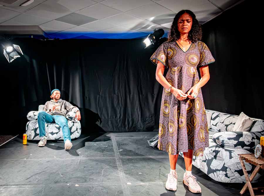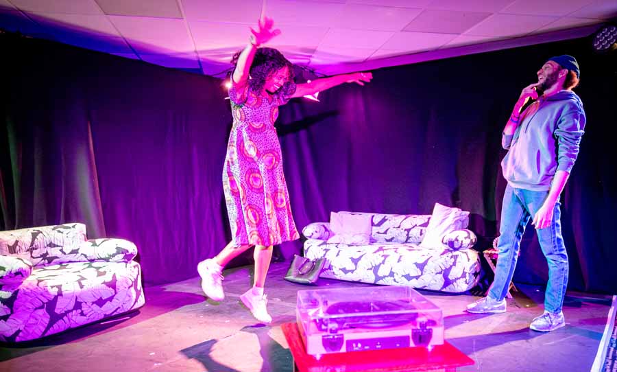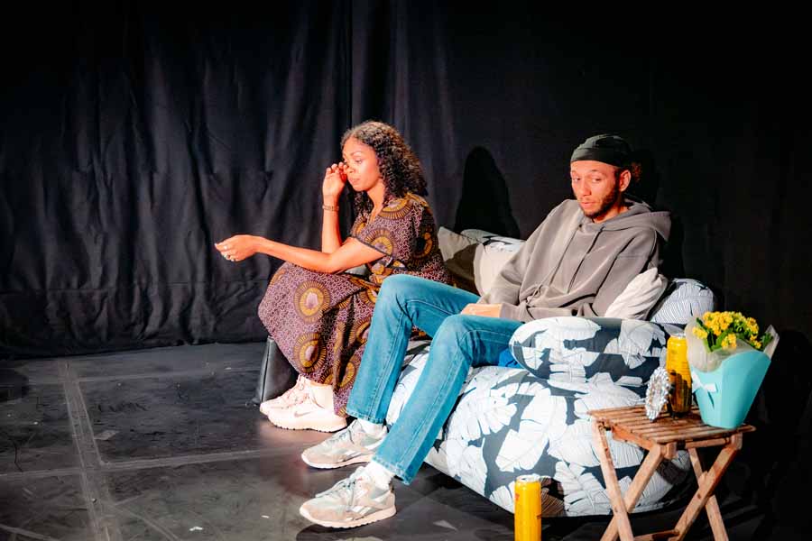 Co-written by Olivia Penhallow and Nathanial Allen, who also perform the lead roles of siblings, Keisha and Kumi, Marble Cake explores issues of mixed-race identity and sibling rivalry. Keisha has left home and has a successful career. Kumi lives at home with their mother. When Keisha comes home to visit, she accuses Kumi of a lack of ambition and criticises his drinking. Kumi is caring for their mother, who has MS, but he has not told Keisha this, and it is not revealed until near the end of the play. Keisha feels disconnected from both her father’s Nigerian Heritage and her mother’s Irish roots. Kumi does not share her feelings and seems happier with his own identity, which angers Keisha. The pair bond when Kumi puts on an LP and they dance together, but the friction bubbles up again throughout their conversations until Kumi blurts out the truth about their mother’s health, resulting in them putting aside their issues. Marble Cake is a thoughtful, well-written, and acted piece. While I wasn’t able to relate properly to the mixed-race issues that the play presents, not being of mixed race myself, I was able to empathise with both Keisha and Kemi’s point of view, and their familial tensions were very relatable. I imagine this would be the case for many of the audience members as well. Seeing the play was a worthwhile experience and I hope it goes on to do well after the Fringe.
