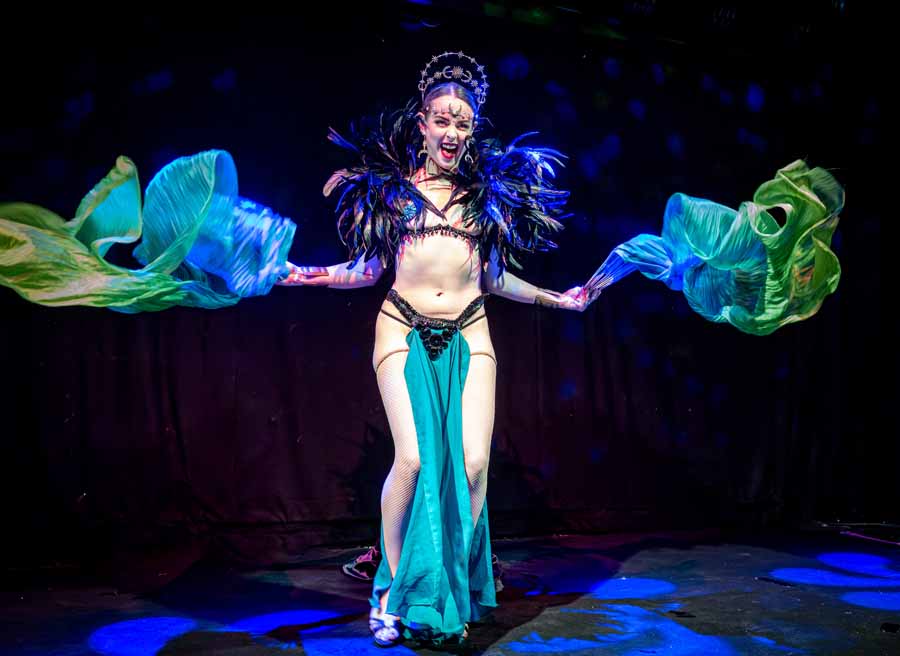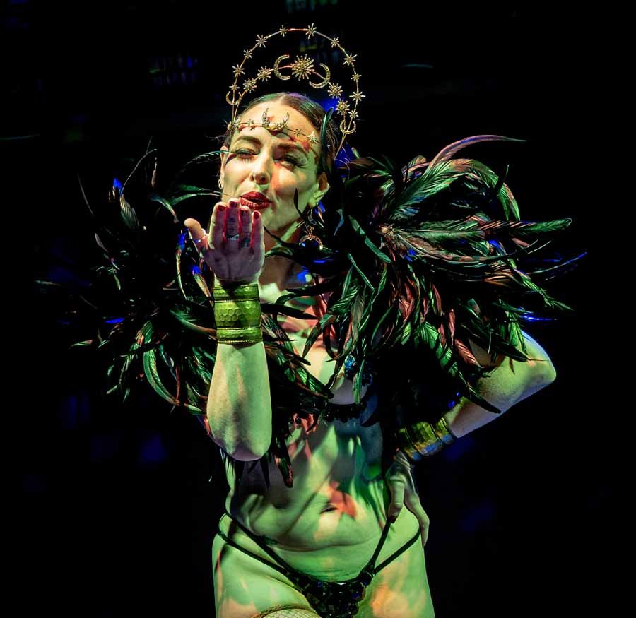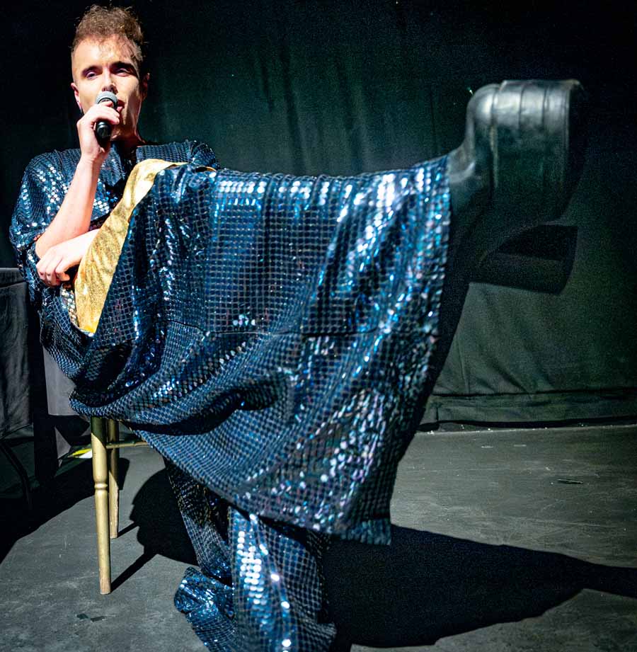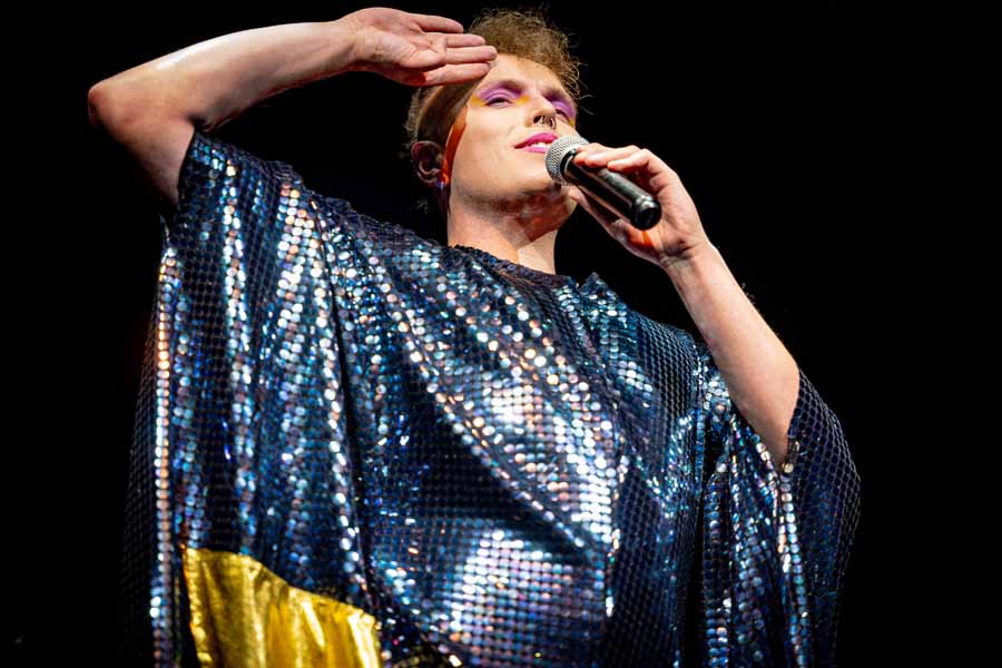 Moonage Rhapsody is Aiden Sadler’s tribute to two of their heroes: David Bowie and Freddie Mercury. Born to a life of glitter and glam but growing up in non-glittery, unglamorous Gravesend, Bowie and Mercury were the twin icons that propelled Aiden to a shiny showbiz cabaret career. Assisted – enhanced even – by the phenomenal keyboard talents of Natasha Panas on piano, Sadler splits the evening fairly evenly between songs by both songwriters, although audience preference is also taken into consideration. Sadler’s love for the source material and their frequently self-deprecating between-song banter sells the performance despite an ongoing recovery from a chest infection resulting in Sadler struggling slightly with some of the high notes. Highlights include Life On Mars? with stunning work from Panas and I Want To Break Free, during which Sadler deploys the venue’s vacuum cleaner.