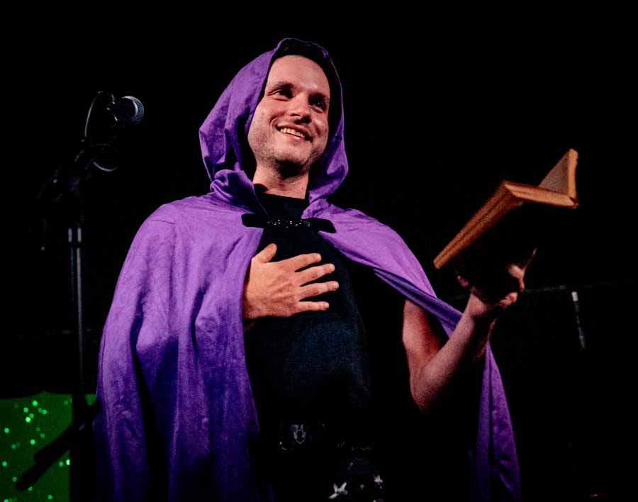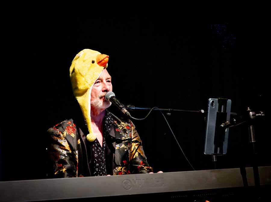 A new name to me, Thumpasaurus are an American funk rock band with a nice line in silliness and self-mythology. The show opens with a Star Wars-style projected prologue and a narrative from a cloaked singer/guitarist, Lucas Tamaren, read from The Book Of Thump. The band: Tamaren, Henry Was (drums), Logan Kane (bass), Henry Solomon (saxophone), Paul Cornish (keys), and Ben Benjamin (visuals) kick in with a relentless funk. Although new to me, it transpires that the band are no strangers to the Fringe, and they have obviously picked up a fair number of fans during previous visits. If a portal to the world of Thumpasaurus opens up near you, I’d recommend stepping through it; you may never be the same again.