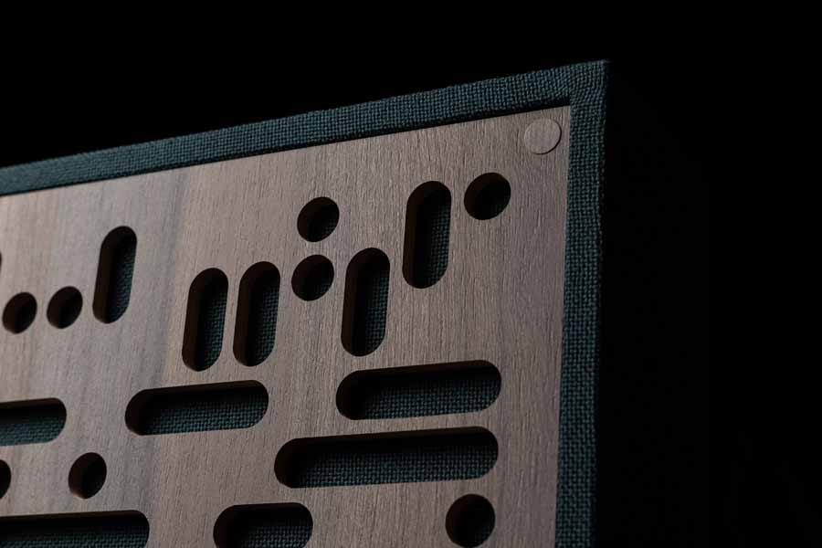 The GIK Acoustics Amplitude line is finished in premium Camira fabrics, recognised for their acoustic transparency and professional-grade durability. These materials are available in 20 colour options, with 12 pattern choices and five finish selections: Beech, Walnut, Grey Elm, Black and White.