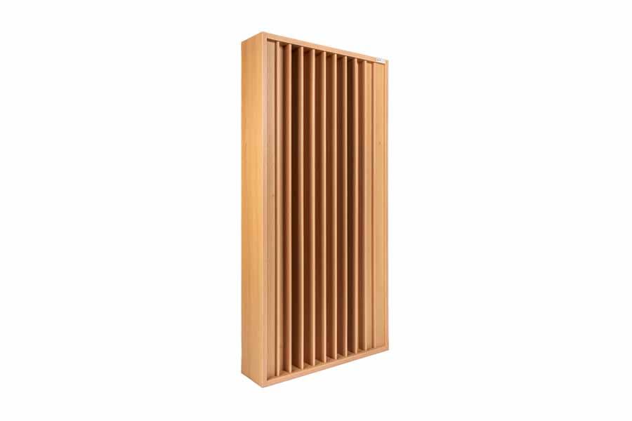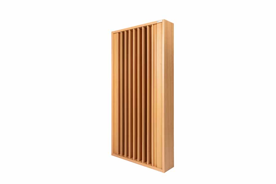The GIK Acoustics Q11D Diffuser is manufactured using CNC-cut wood laminates. It is available in a choice of Beech, Walnut, Black or White finishes. Two size options are offered, a full-height model and a Demi version, which is half the height of the standard unit.