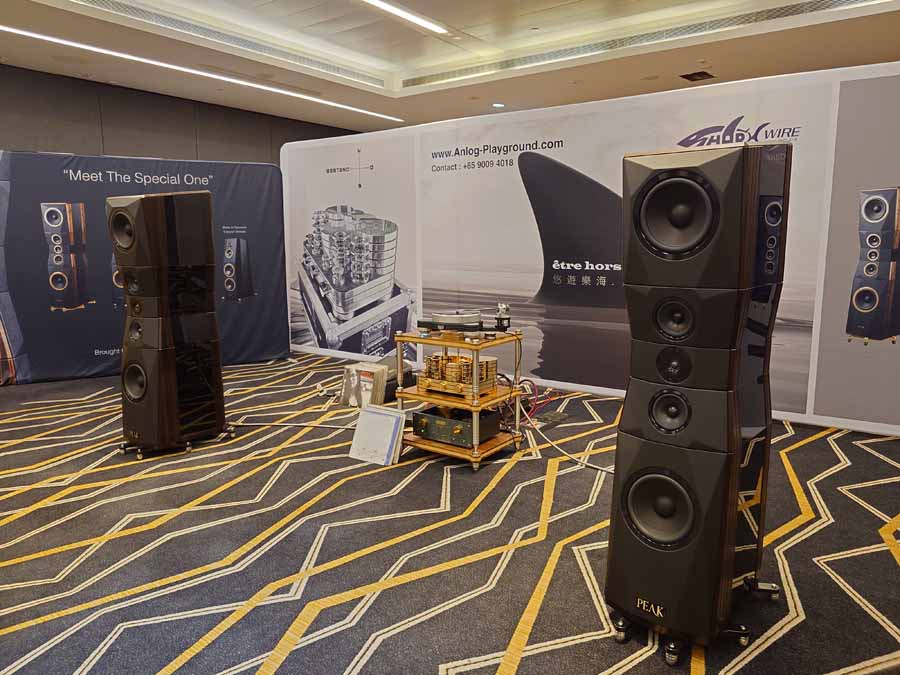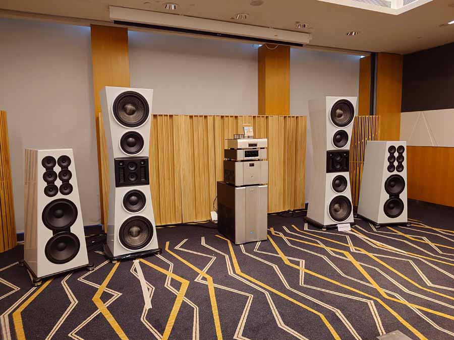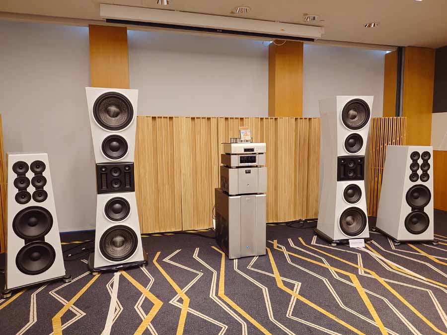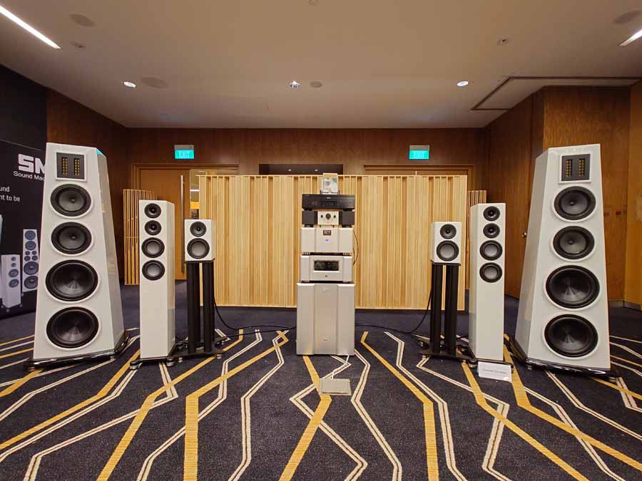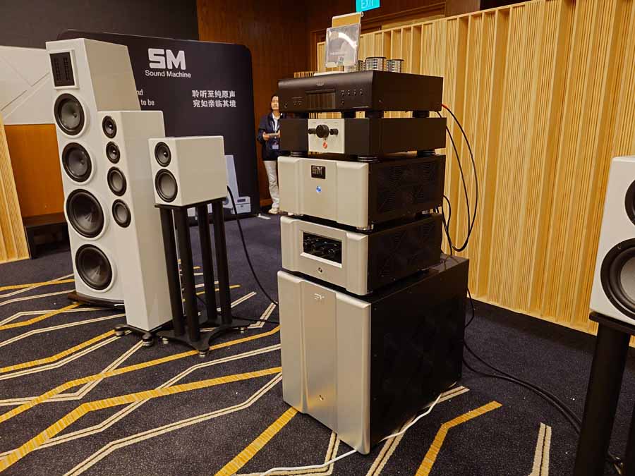 In Shanghai, the massive cabinets overwhelmed the confined hotel room. Here at Suntec, with proper space to breathe, the size felt justified. The sound was effortless and airy, with the kind of dynamic authority only serious mass and power can deliver. Sound Machine also unveiled two new models aimed at audiophiles with average-sized spaces: the SM650 bookshelf and SM500 floorstander, proving they understand not everyone has room for battleships in their listening space.