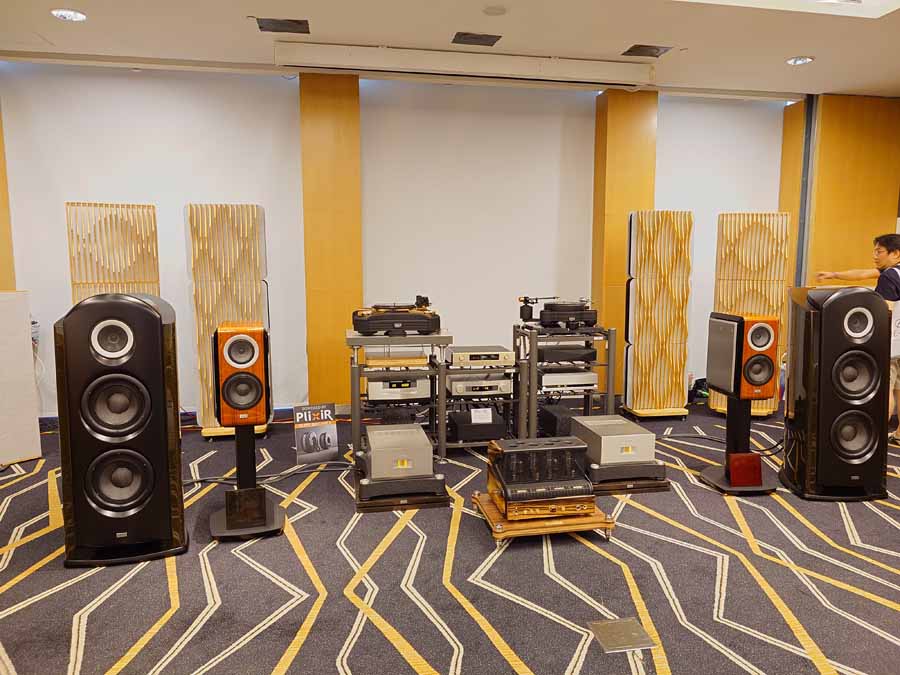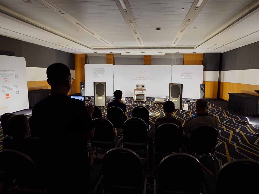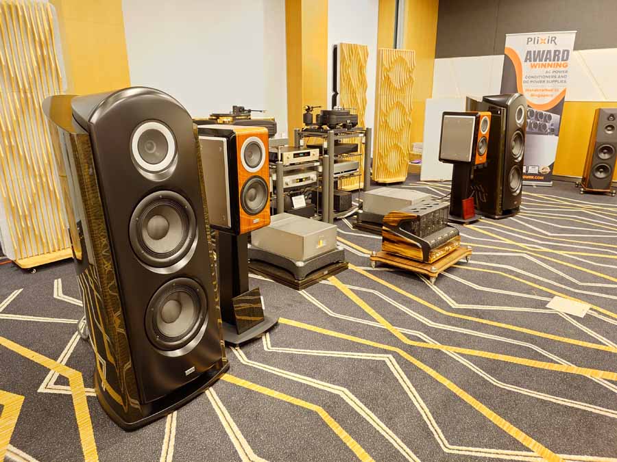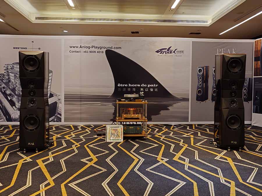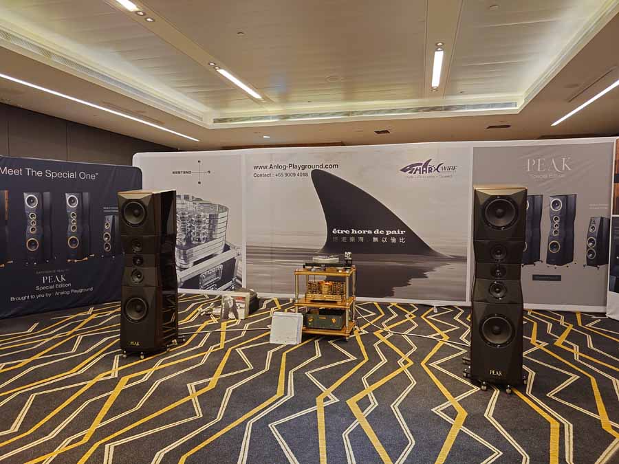 In Shanghai, the massive cabinets overwhelmed the confined hotel room. Here at Suntec, with proper space to breathe, the size felt justified. The sound was effortless and airy, with the kind of dynamic authority only serious mass and power can deliver. Sound Machine also unveiled two new models aimed at audiophiles with average-sized spaces: the SM650 bookshelf and SM500 floorstander, proving they understand not everyone has room for battleships in their listening space.