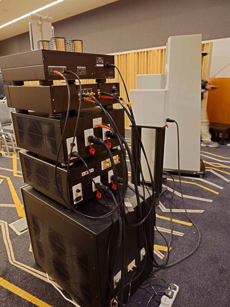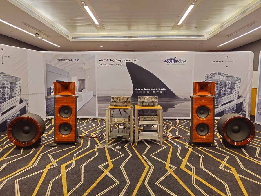 Room 303 belonged to Direct Sound Machine, representing proud Singaporean heritage with youthful energy backed by over 40 years of combined experience. I first saw the brand at the Shanghai Show in July, and their approach immediately piqued my interest: line-level active crossovers split frequencies before amplification, with each driver powered by its own dedicated amp housed separately from the speaker cabinet. Complex engineering choices that make perfect sense on paper but demand obsessive attention to execution.