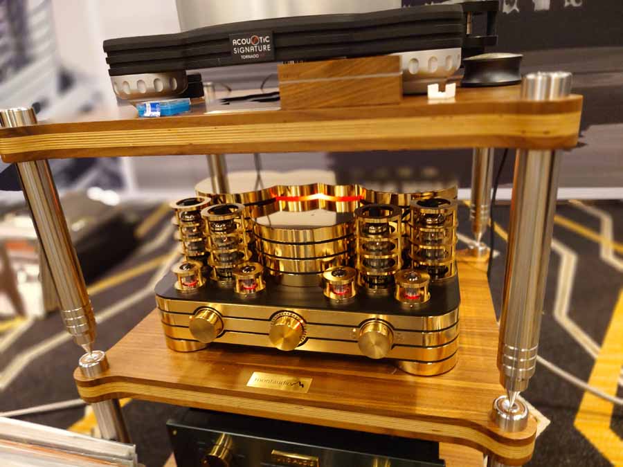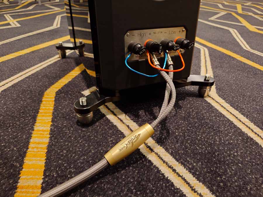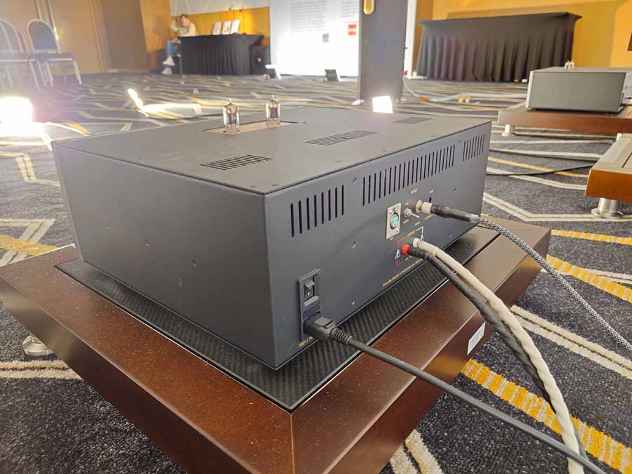 Audio Playground with Sharkwire proved you don’t need faff to impress. The setup consisted of only three boxes and the speakers, all connected by flagship Sharkwire cables. The Acoustic Signature Tornado Neo turntable, JYC Audio Phono preamplifier, and Peak Consult Dragon Legacy speakers formed a cohesive trio, all driven by Westend Audio’s Monaco tube integrated amplifier—a Munich-built masterpiece that commands attention the moment you enter the room. The Monaco’s resonance-optimized aluminium rib construction isn’t just eye candy; it’s an engineering spectacle. With 100 watts per channel into 4 ohms from those E130L power tubes, the amp drove the Dragons beautifully, delivering the kind of lively, clean presentation that proves tube amps don’t have to sound soft or romantic.