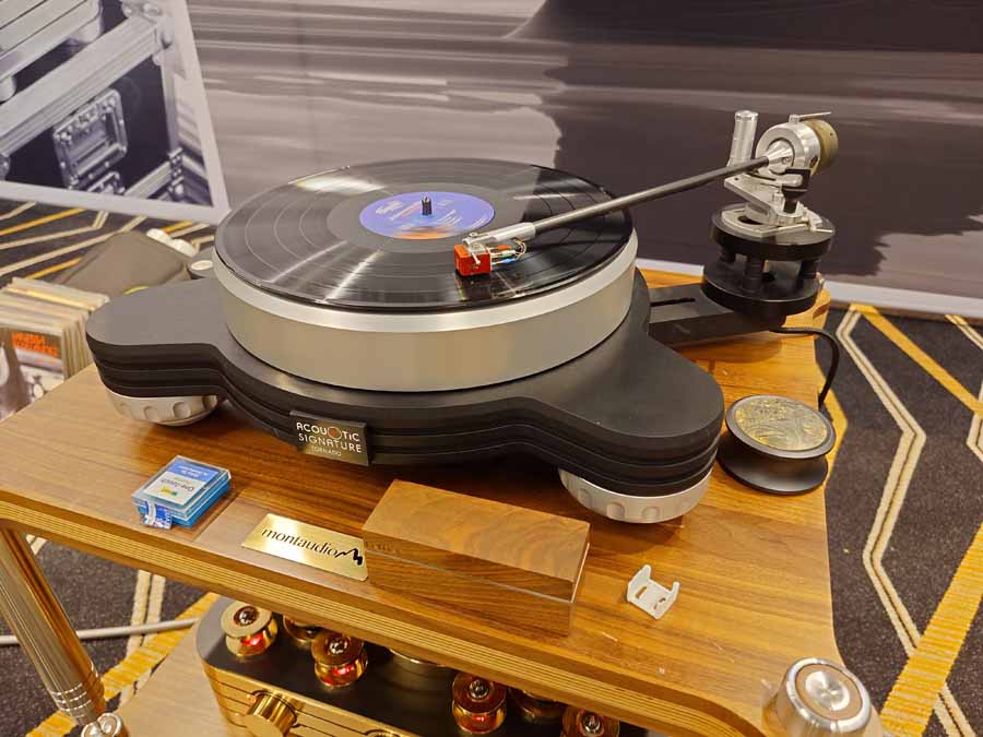 Audio Line’s Room showcased TAD’s Reference series doing what it does best—delivering studio-monitor accuracy without the sterility. The Reference One speakers, driven by M700 mono amps, C700 preamp, and D700 CD player, created a remarkably transparent soundstage. For analog duties, the Accuphase C-47 phonostage paired with the Acoustic Signature Invitus Neo turntable handled vinyl playback with precision.