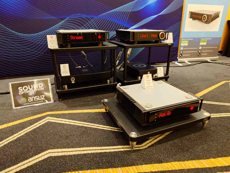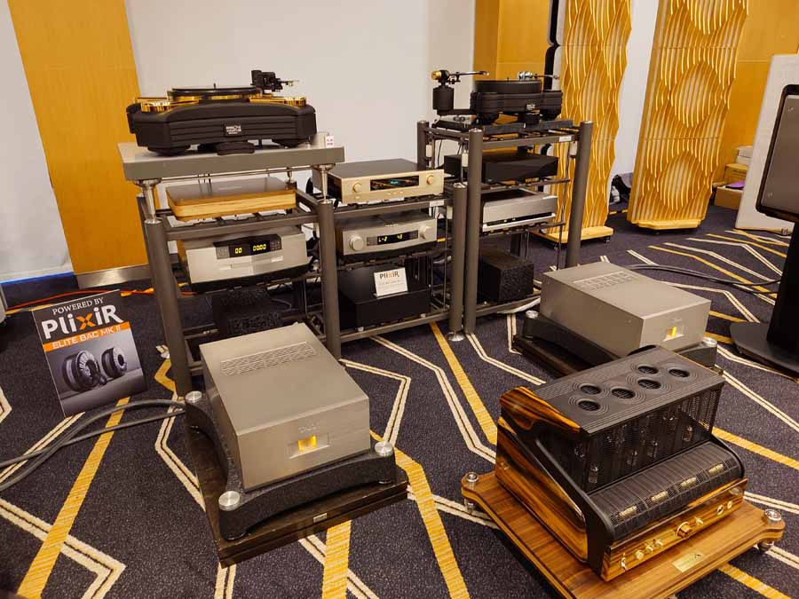Near the entrance, Audio-Technica showcased its excellent headphones and popular cartridges, while an impressive display highlighted the new Hotaru all-in-one turntable. Peak Consult and Diapason speakers rounded out the room, with PLiXiR power supplies keeping everything running clean.