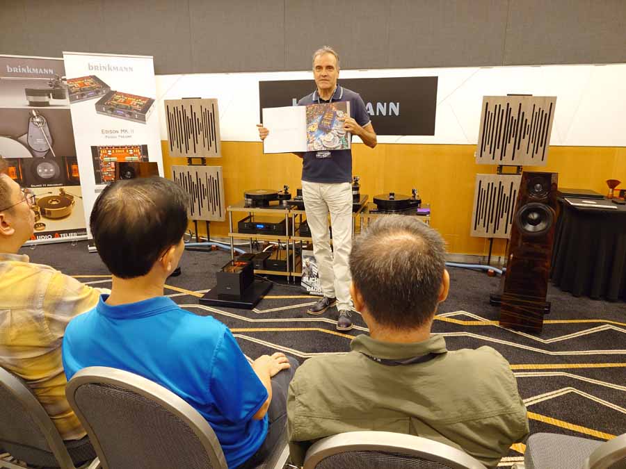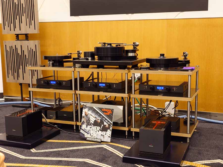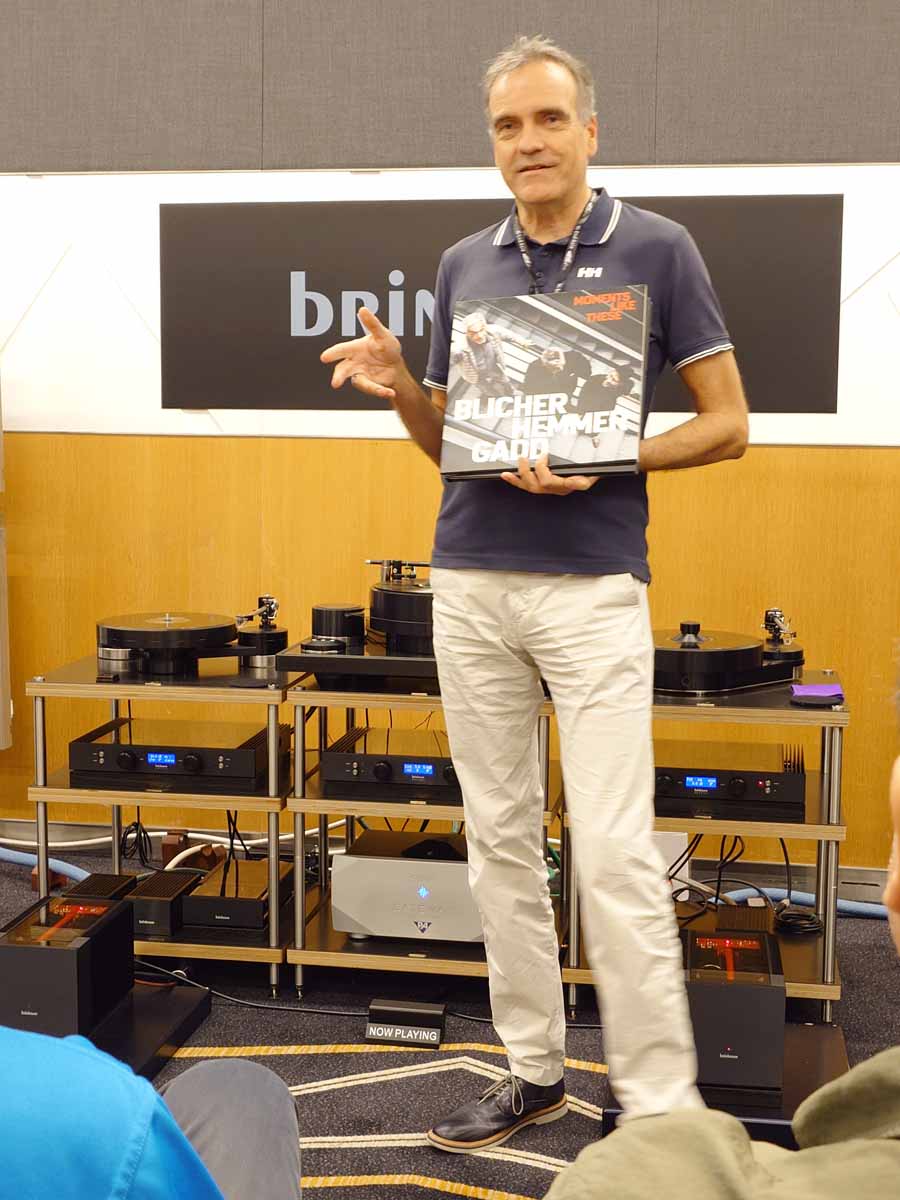 The third setup became a personal favourite. Facing the Italian beauties across the room sat a thoroughly German affair: Kaiser Kawero Furioso speakers paired with Brinkmann’s restrained but deeply engineered system. Matthias Lock, one of the company’s owners, walked us through their philosophy with the enthusiasm of someone who genuinely loves what they make—always a positive sign.