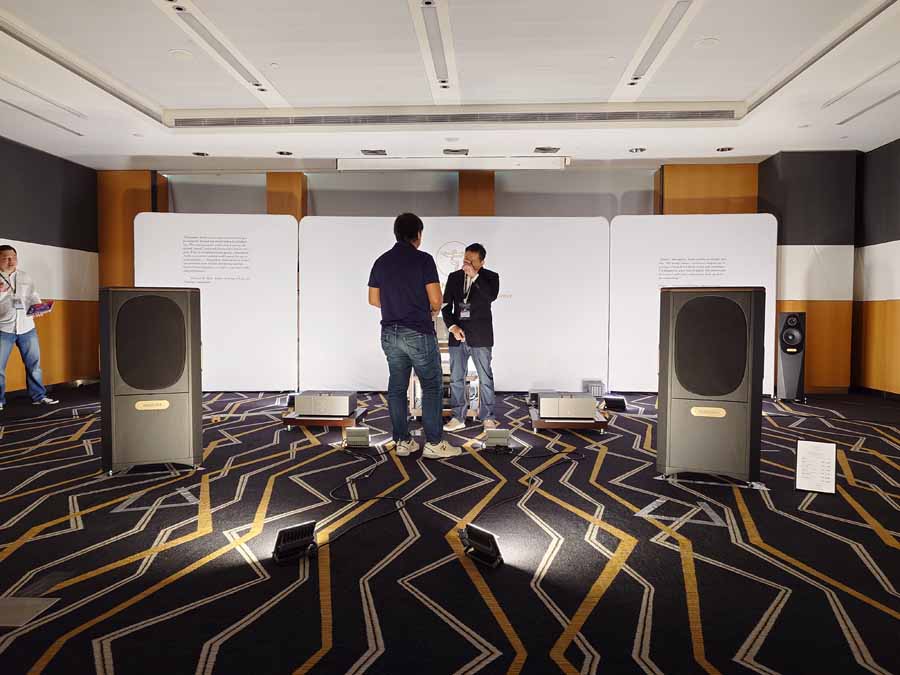Audio Atelier installed three distinct systems for the three sides of the room, with their knowledgeable team rotating chairs on a regular basis in accordance with the live systems.