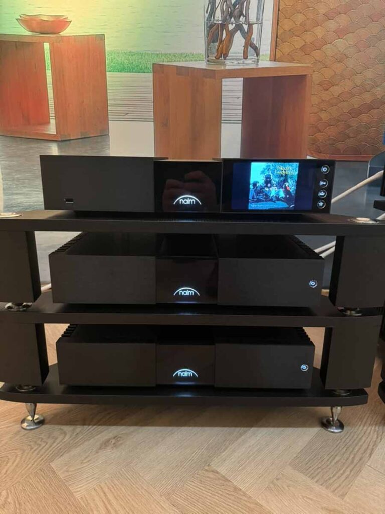 This is a fantastically fuss-free setup as well. Three boxes. Three cables. One rack. Done. Whilst it’s often a secondary consideration, in a show featuring a lot of Class A amplification that puts out huge amounts of heat, the Naim barely gets above room temperature, so it’s fantastic for year-round listening without needing to change into budgie smugglers for a listening session. It also offers a wide range of connectivity options, including support for AV systems via the HDMI port.