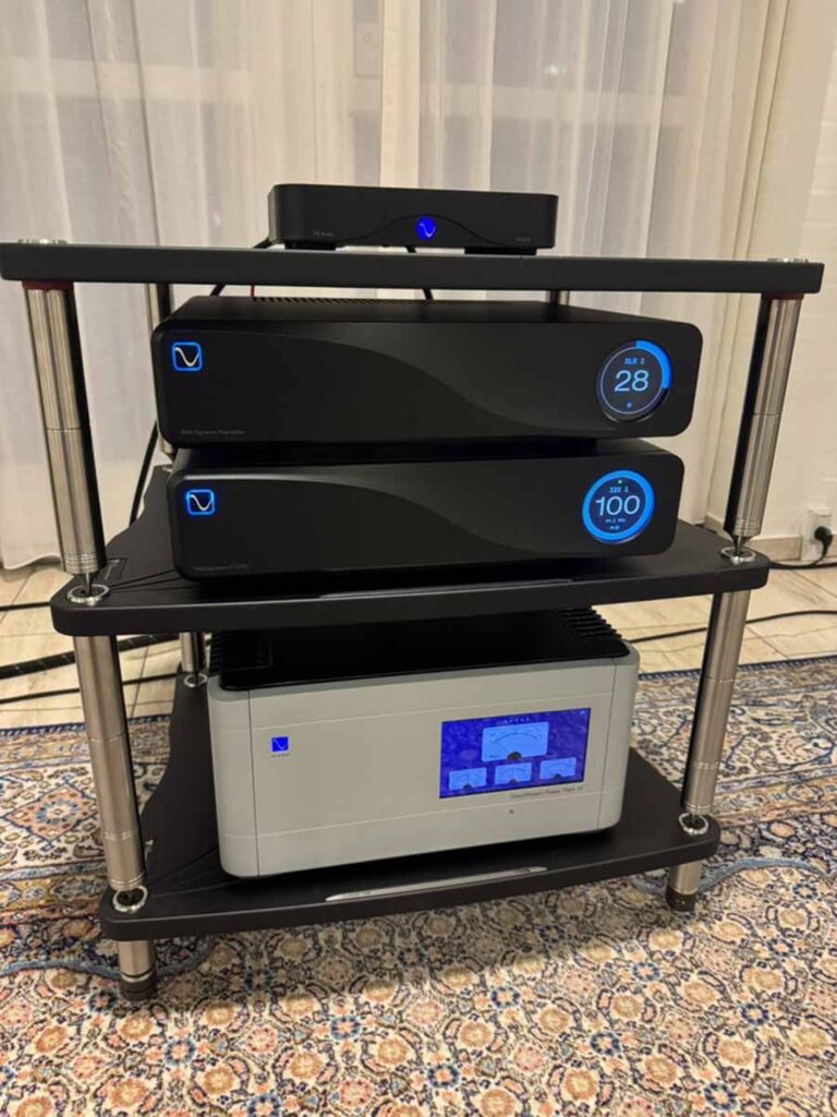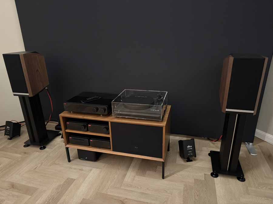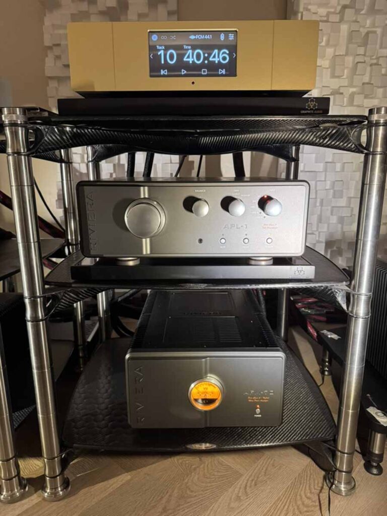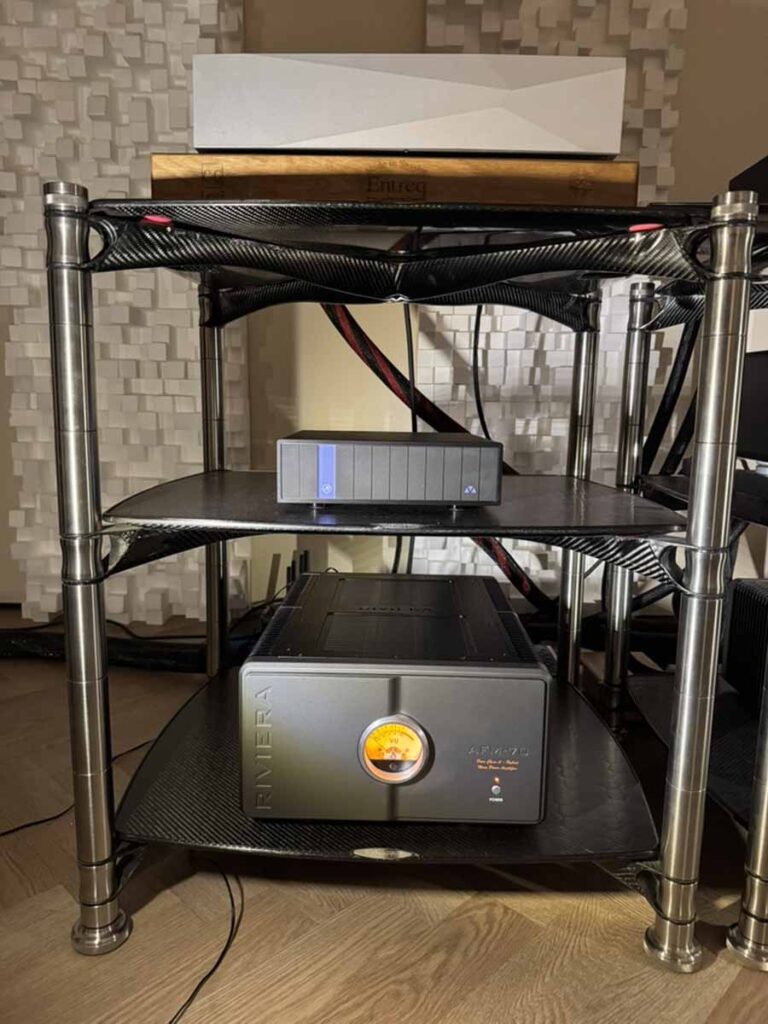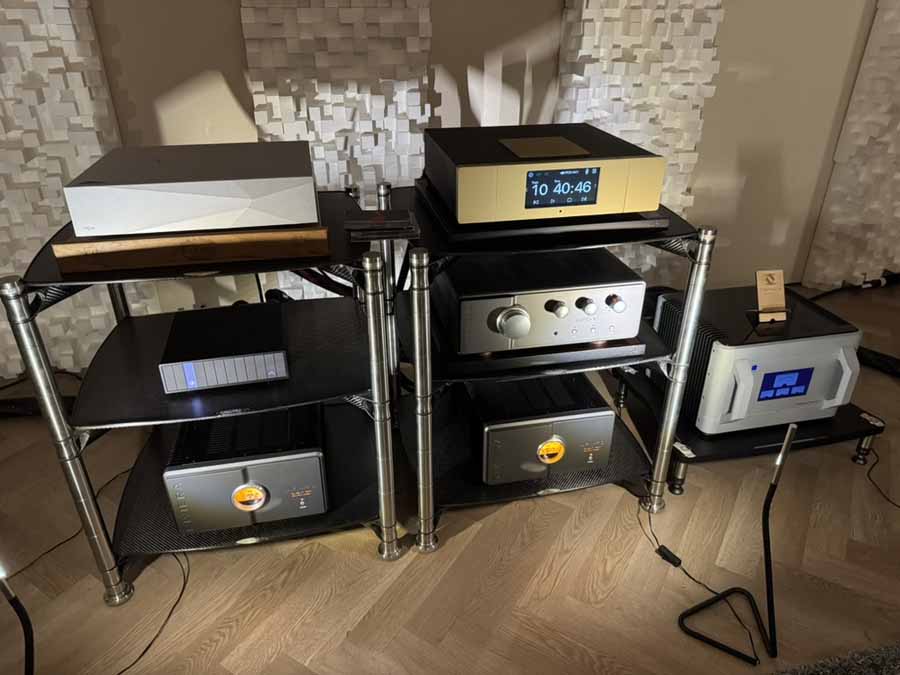 Equipment racks were primarily from Bassocontinuo, and additional isolation devices were provided by the Polish firm Graphite Audio.
