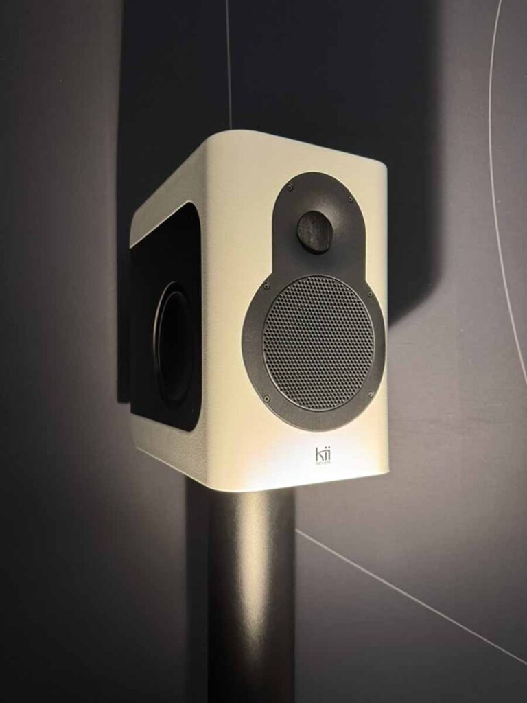 Wiim at Kii is well known to us at HiFi PiG, and here he was demonstrating the Kii Seven standmounts, in what was comfortably the cheapest system at the show by some margin. Their use of close-wall positioning and DSP, along with the cardioid bass-driver arrangement, means these tiny 10L boxes sound far bigger than you’d expect from anything this size. This was another ~100sqm room, but the Sevens weren’t bothered at all by filling such a huge space.