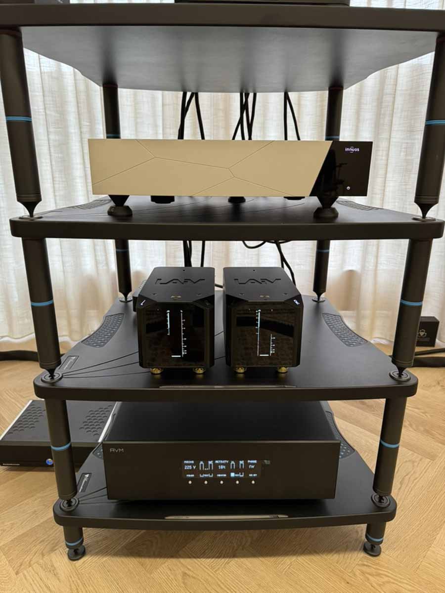 Equipment racks were primarily from Bassocontinuo, and additional isolation devices were provided by the Polish firm Graphite Audio.