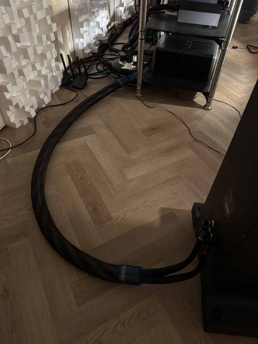 On Friday evening, while the various teams were working hard to optimise the upstairs systems for the challenging room acoustics, two of Morten’s long-time customers, who had kindly offered to lend a hand for the weekend, were tasked with unboxing and connecting the gear in this room. It’s quite reassuring for those of us who aren’t dealers setting up systems all the time, because the chaps got a really great sound going in the room just via playing around extensively with the speaker placement. There was no DSP running here, no acoustic panels anywhere, just the all-in-one and the S2s.