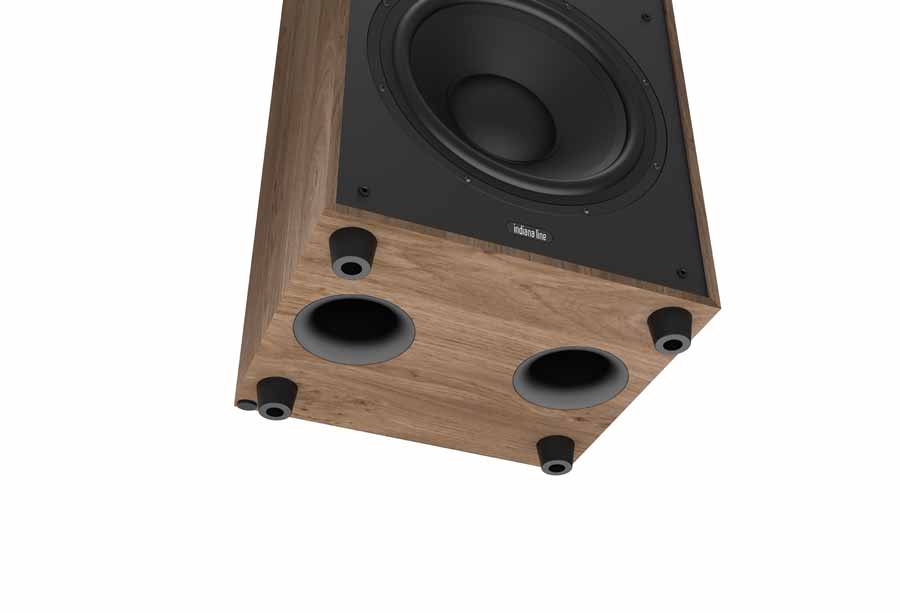 With a sensitivity of 94dB this is a very efficient speaker, usually found in systems with big drivers, and the dual port underneath provides extended bass down to 38Hz.