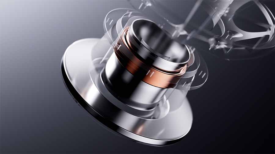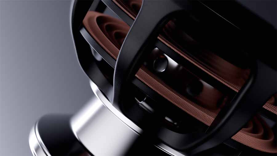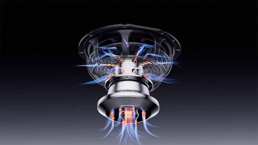 Linn’s Pistonik motor system incorporates a magnet assembly held in permanent magnetic saturation to stabilise the magnetic field and reduce distortion associated with eddy currents. The company states that this approach improves responsiveness and reduces strain on amplification. A triple-layer ventilation structure is also used to minimise acoustic compression and maintain airflow through the motor assembly.