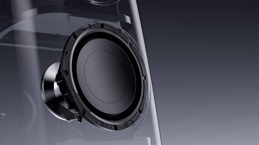 Thermal management has been addressed through integrated cooling paths designed to dissipate heat from the voice coil into surrounding materials, maintaining stable performance over extended listening periods. The suspension system has been engineered using simulation tools to provide controlled behaviour at high excursion levels, with stiffness increasing predictably near operational limits.