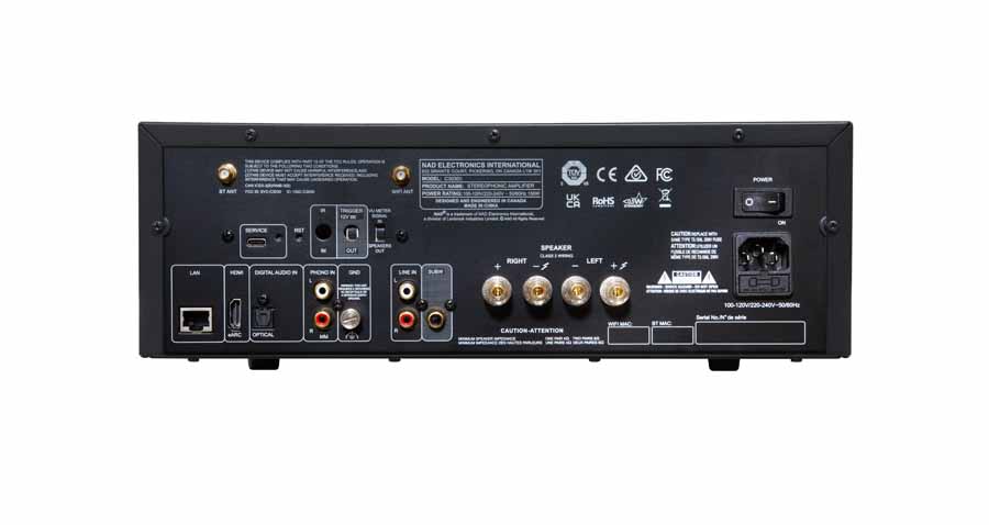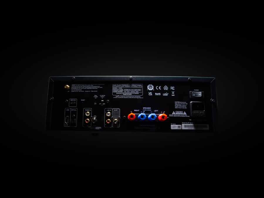 Alongside BluOS streaming, the NAD C 3030S includes HDMI eARC, aptX HD Bluetooth, optical digital inputs, analogue inputs, and a built-in moving magnet phono stage for vinyl playback. A bass-managed subwoofer output is also provided, enabling flexible system configurations without the need for external components.