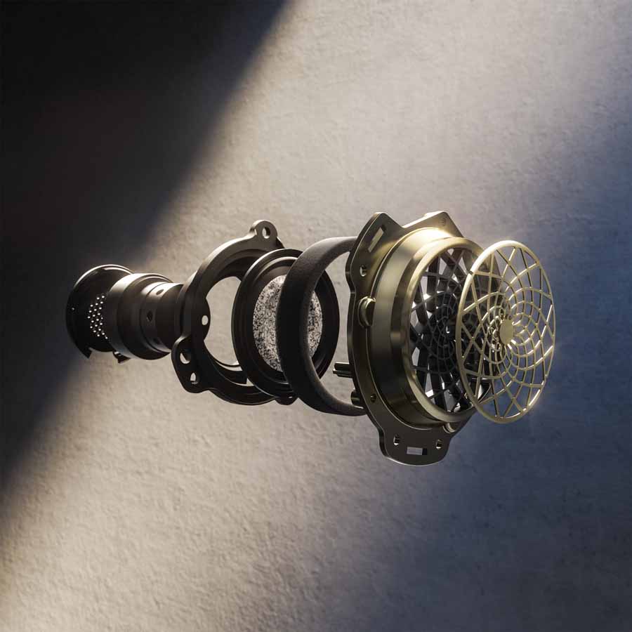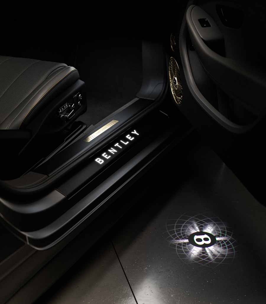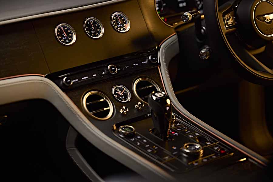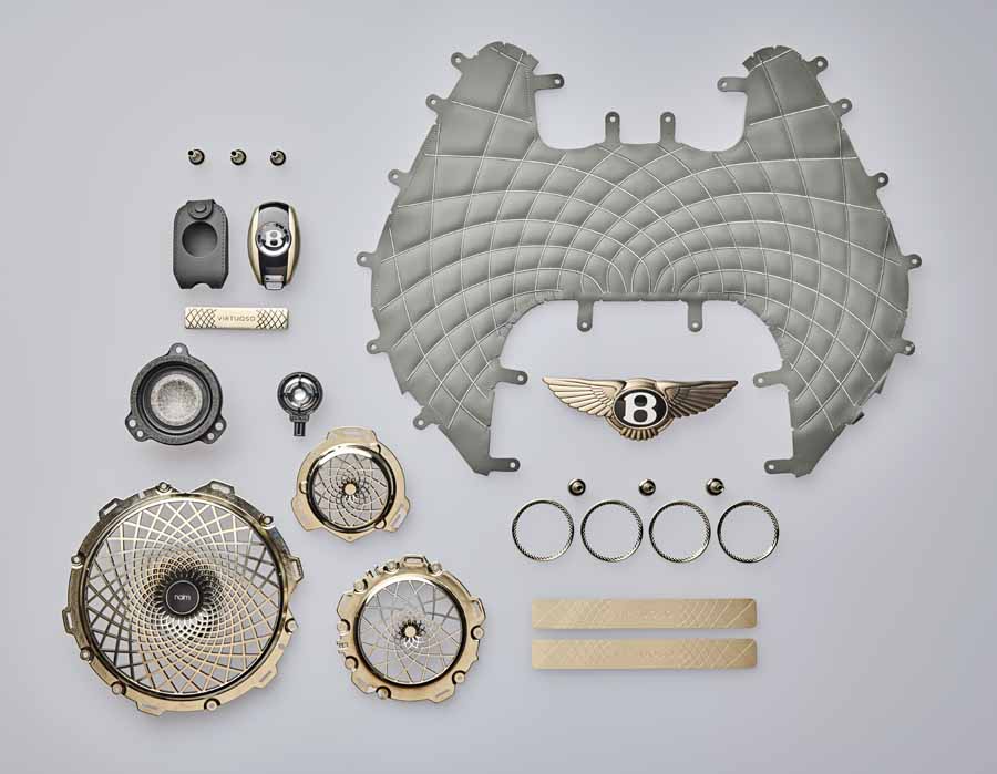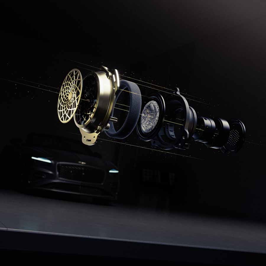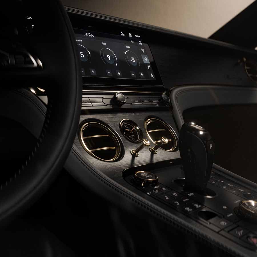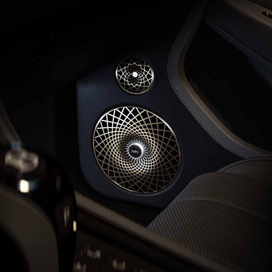 The audio system has been developed jointly by engineers from Mulliner, Naim, Focal and Dolby, with integration designed specifically for Bentley interiors rather than as an add-on component package. Visual elements include bespoke speaker grilles finished in Champagne Gold, designed to balance acoustic transparency with interior aesthetics.