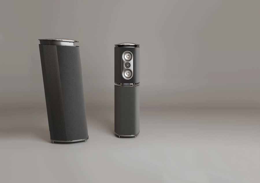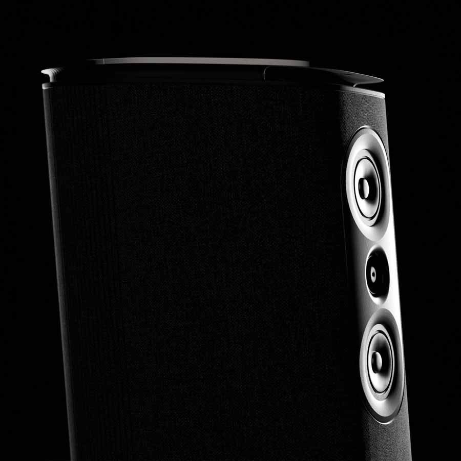 Driver placement within the ATOM models is intended to maintain soundstage accuracy across both horizontal and vertical listening planes. The cabinet form avoids flat surfaces and sharp edges, improving stereo imaging, while ultra-lightweight midrange drivers are designed without a traditional spider suspension, aiming for greater clarity and reduced mechanical restriction.