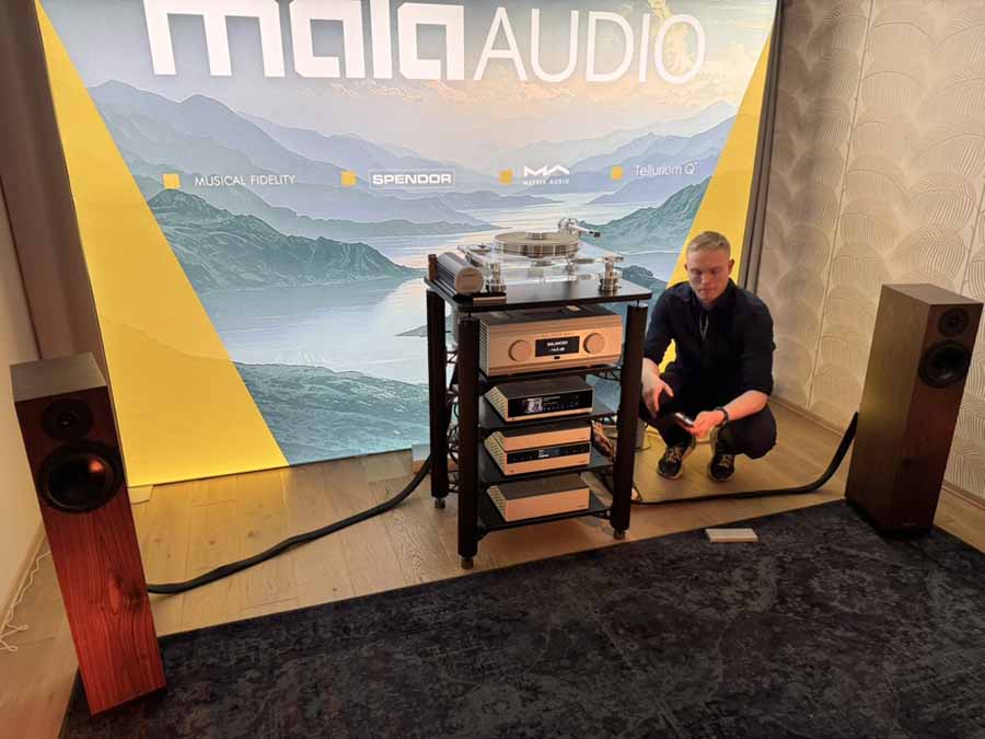 This first Mala Audio room featured the DCS Lina X + Master Clock, Kuzma Stabi R + 4.9 tonearm and Esoteric Integrated with phono, Boulder 1151 monoblocks and Marten Parker Trio Diamond Edition speakers.