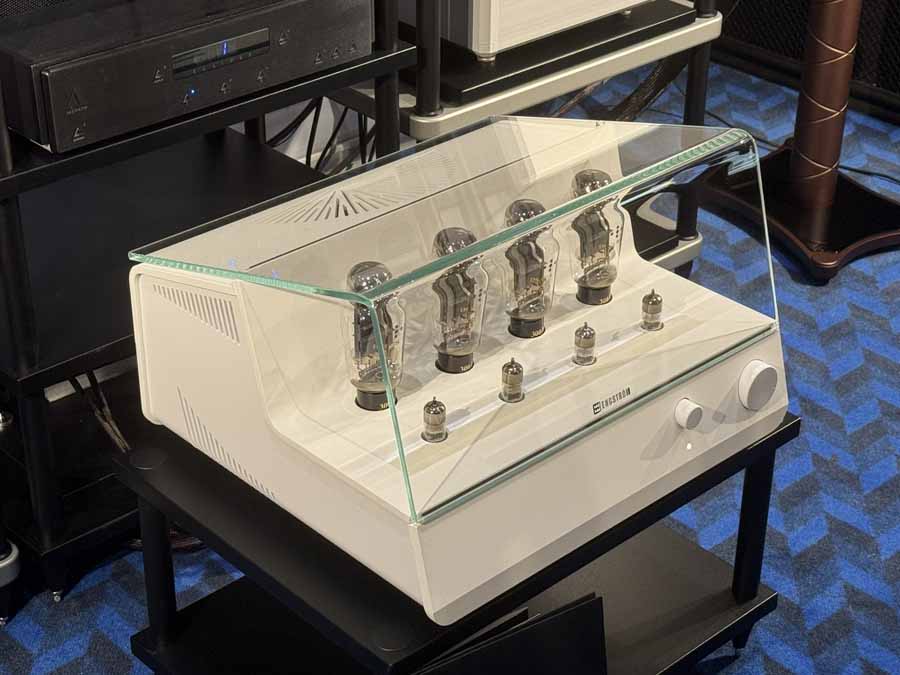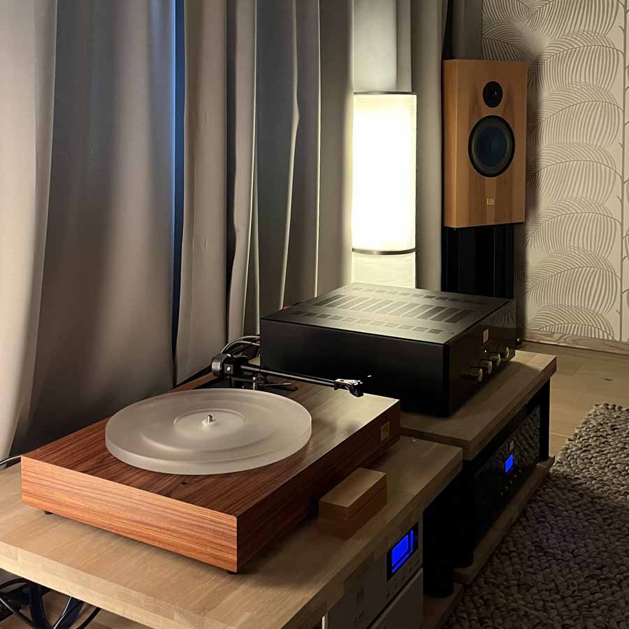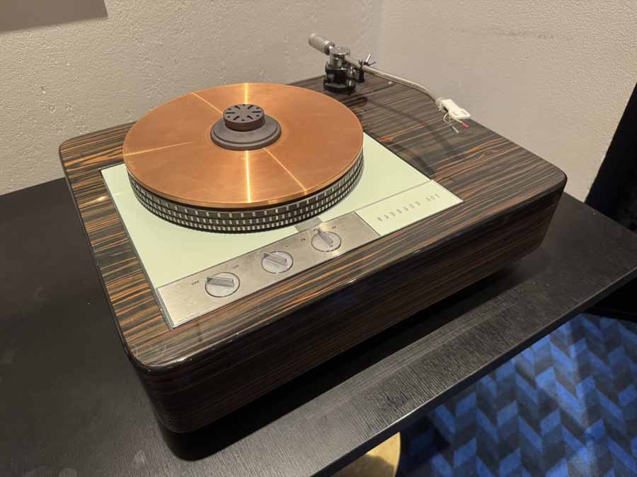 The outside system was utilising a TechDas Air Force V, Korf T9 arm, and a TechDas cartridge. This was running into an Aesthetix Rhea phono stage. We then had the absolutely stunning-looking Engtröm Arne integrated, which runs 4x300B valves. The speakers were a very distinct-looking and compact standmount from Storgaard & Vestskov, the Freda (and if the bronze look isn’t your thing, they offer a host of varied finishes). These are hugely impressive standmounts, running down to a nominal 30Hz, but with a particularly gentle roll-off, which are quite frankly mad numbers.