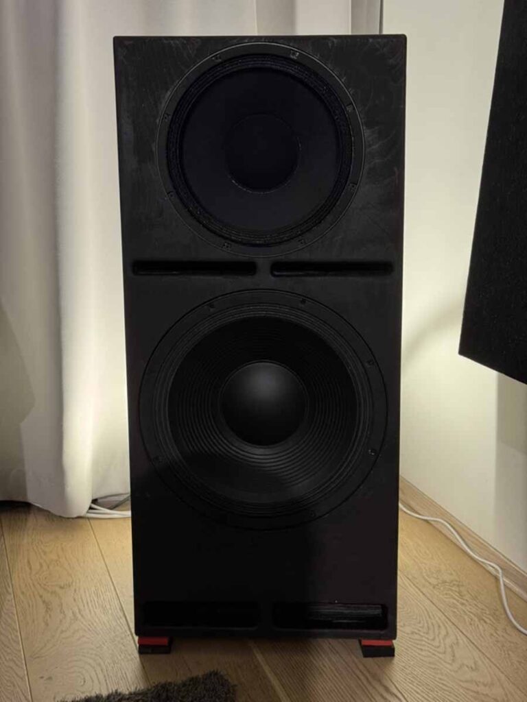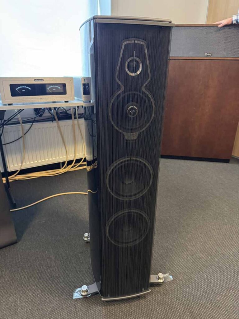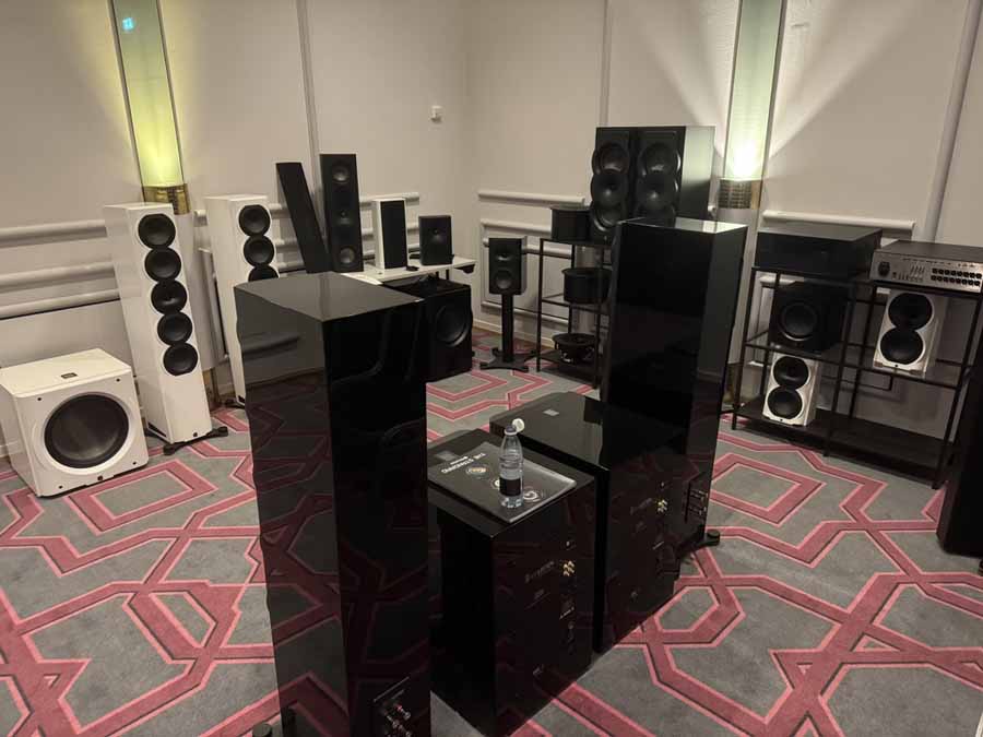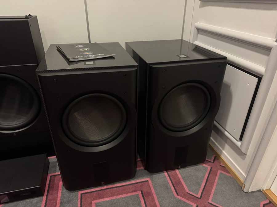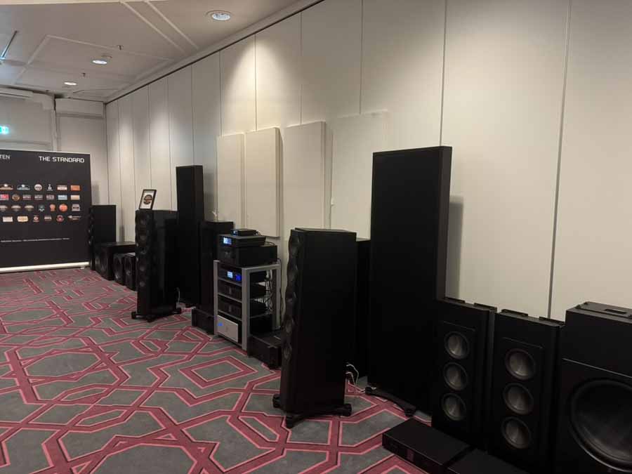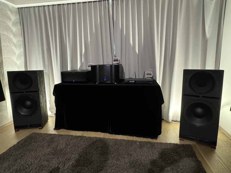 AudioCenteret seemed to have brought every single different Perlisten loudspeaker for static demo, including some truly gargantuan subs. This isn’t actually true because Perlisten produces a Biblical array of loudspeakers, so there is something perfectly tailored to every situation, but it there were more units there than most companies have in their entire speaker lineups. There’s some really quite interesting variation across the lineups, for example with some of the subs having a roughly cube form factor, but others that were really quite low profile boxes (or at least as low profile as you can make something with a 15″ driver). Similarly, there’s a mix of what I might call “lightly” horned tweeters, where the degree of wave guide is built into the cabinet, alongside models with a considerably larger, protruding horn structure.