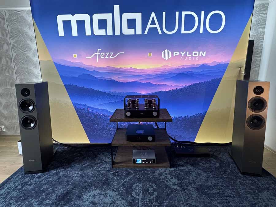 The third Mala room had a Matrix Audio MS1 streaming transport, Fezz Equinox Prestige DAC, Fezz Olympia dual mono integrated amp and Pylon Audio Diamond 28 mk2, 3-way floorstanders.