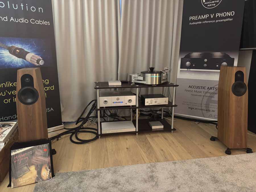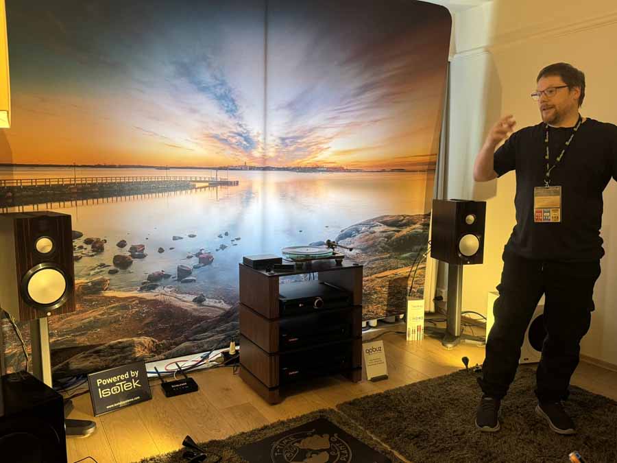 This was a first show outing for the Neat Momentum JS in Norway. Quite a rich sound, but without overblowing the relatively compact hotel room. It’s really Neat doing what they do best. The rest of the system was all Atoll, featuring the CD 200 EVO, ST 300 streamer DAC, and the IN 400 integrated amplifier.