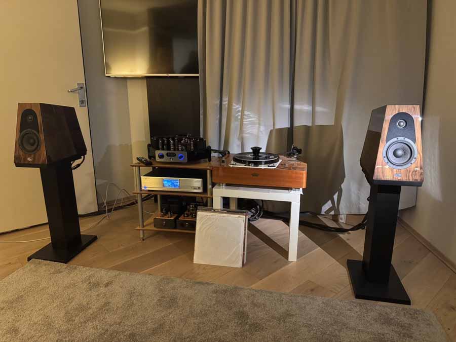 The room setup was a little unconventional, in that the Spendors were positioned quite far into the room, maybe 40cm from the side walls. That did help give a pretty wide soundstage for a relatively compact room.