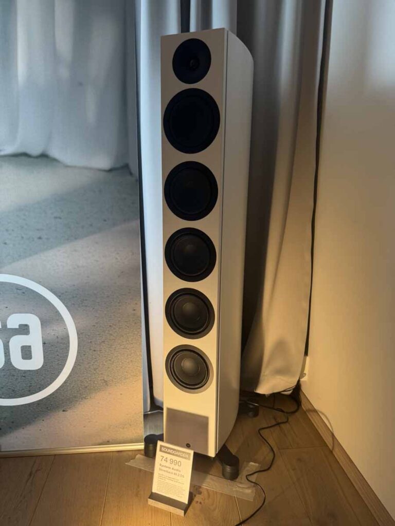 The second Soundgarden room was showing a pair of System Audio Silverback 60.2 DS floorstanders, which are the company’s new flagship. Each side features a tweeter, and then five 6″ drivers covering midrange and bass. The sound here was really quite clean. They definitely feel treble-forward, but not in a way that I found problematic, even if it’s not something I’d seek out. The System Audio system does give you options for things like DSP (as well as multi-room configuration), so it looks like there’s quite a lot of scope to customise to personal preference.