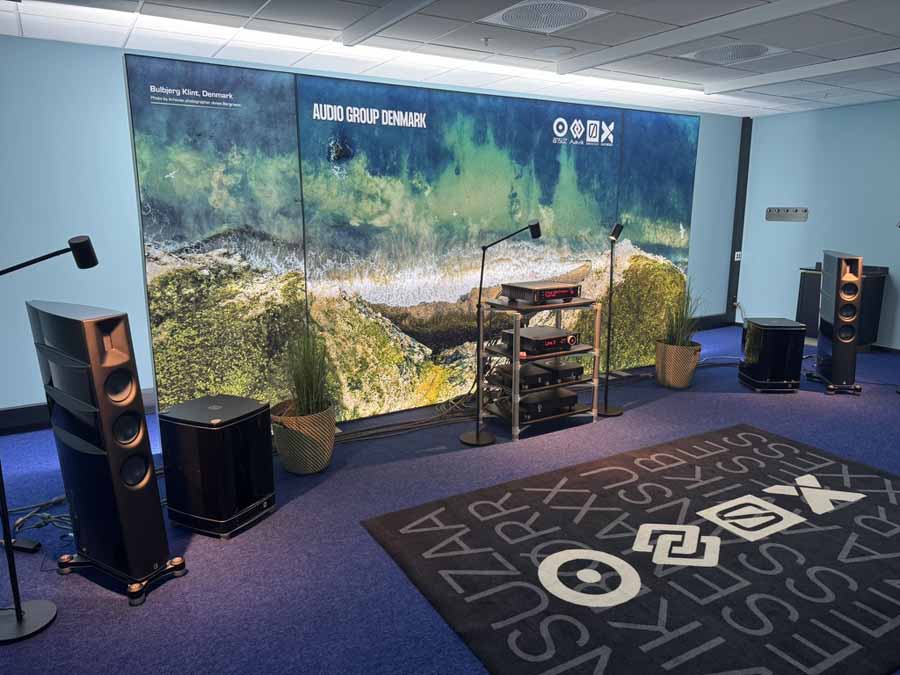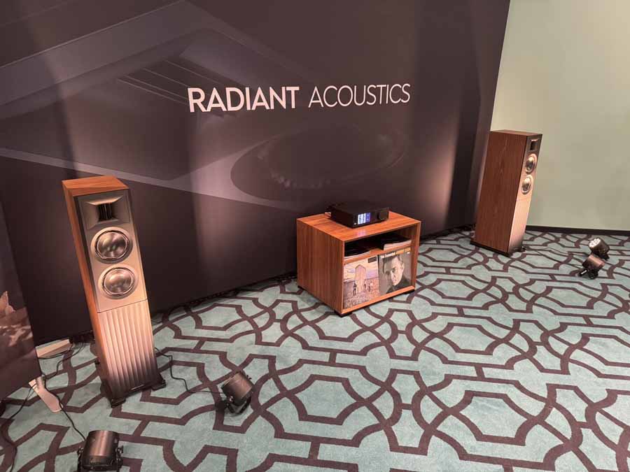 We’re here to evaluate the kit rather than the room, so I’ll focus on what I think the setup was actually doing. Another simple setup, featuring the one-box Lyngdorf 2210, and the brand new Radiant Acoustics Clarity 66 floorstanders. These are the brainchild of Lars Rispo, and utilise the Purifi that he was largely responsible for creating (along with the rest of the technical team at Purifi, of course). Unsurprisingly, given how much it’s the defining characteristic that Purifi pursues, these are very accurate, low-distortion speakers. They are also phenomenally punchy. The custom AMT tweeter uses an interesting front waveguide to aid dispersion as well and strikes exactly the right balance of detail without being overtly analytical or shrill-sounding.