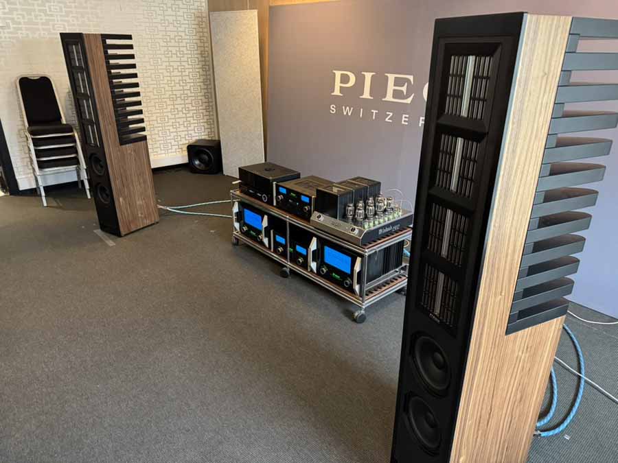 I was really excited for this room. I had my first experience with Piega loudspeakers last year when I reviewed the Piega Coax 411 standmount, and it’s so far the only thing I’ve given a Reviewer’s Choice award to. How would these vastly bigger brothers compare? Yes, they use ribbons for both mid and treble, but it’s closer to a line-array arrangement, rather than the coaxial layout of the 411, and the cabinet is completely different, with no tensioned aluminium construction.