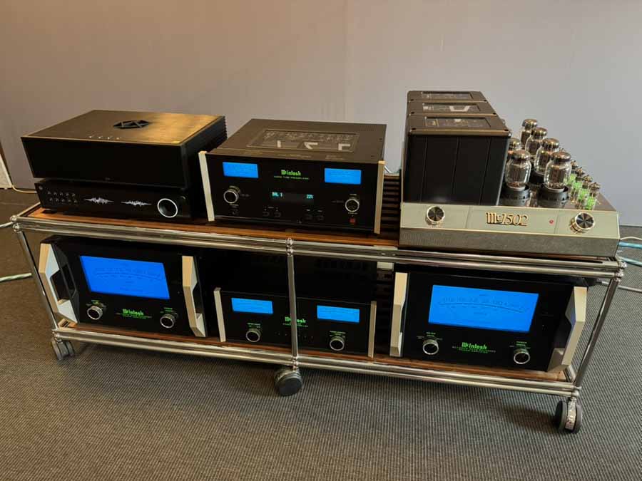 Taking the opportunity to play around with the system’s configuration, they were using the crossover option in the McIntosh pre-amp. The MC1502 was being used to drive the ribbons, and a pair of MC1.25KW monoblocks was being used to drive the bass. There was also a quartet of the SVS SB-3000 subs, used very lightly to help with the very lowest frequencies, positioned with one tucked away in each corner of the room. Streaming was provided