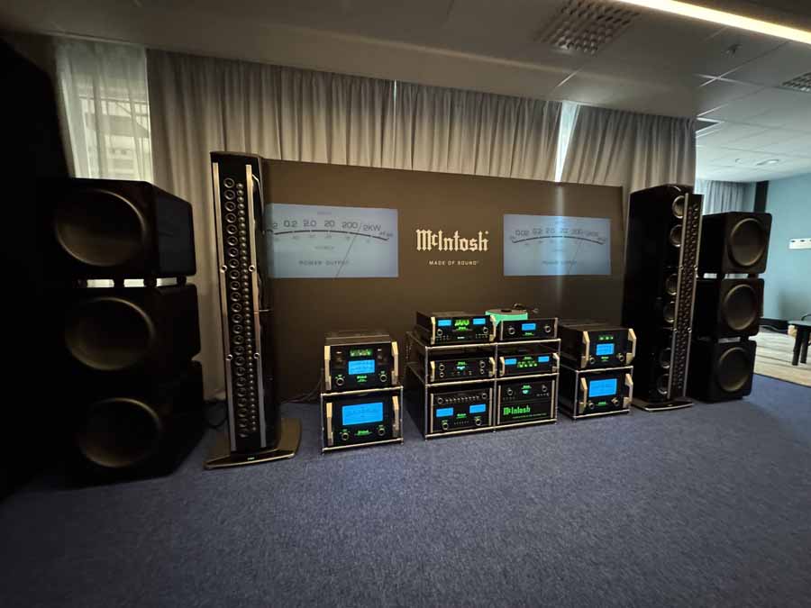 The XRT loudspeakers utilise a phenomenon that’s common to live PA systems, but is pretty much unheard of in consumer HiFi – the line array. The reason concerts these days use long, thin columns of loudspeakers (rather than the wall-of-sound approach that the Grateful Dead pioneered) is that long columns of drivers with very narrow spacing creates a dispersion pattern that’s far wider than a single driver can produce. This actually gives McIntosh an advantage at a HiFi show, because it becomes much easier to get the setup to sound great for everyone in the room. Most HiFi is far more focused on producing the perfect sound for a single person’s ears, which can make it almost impossible to give everyone at the show the best of the system.