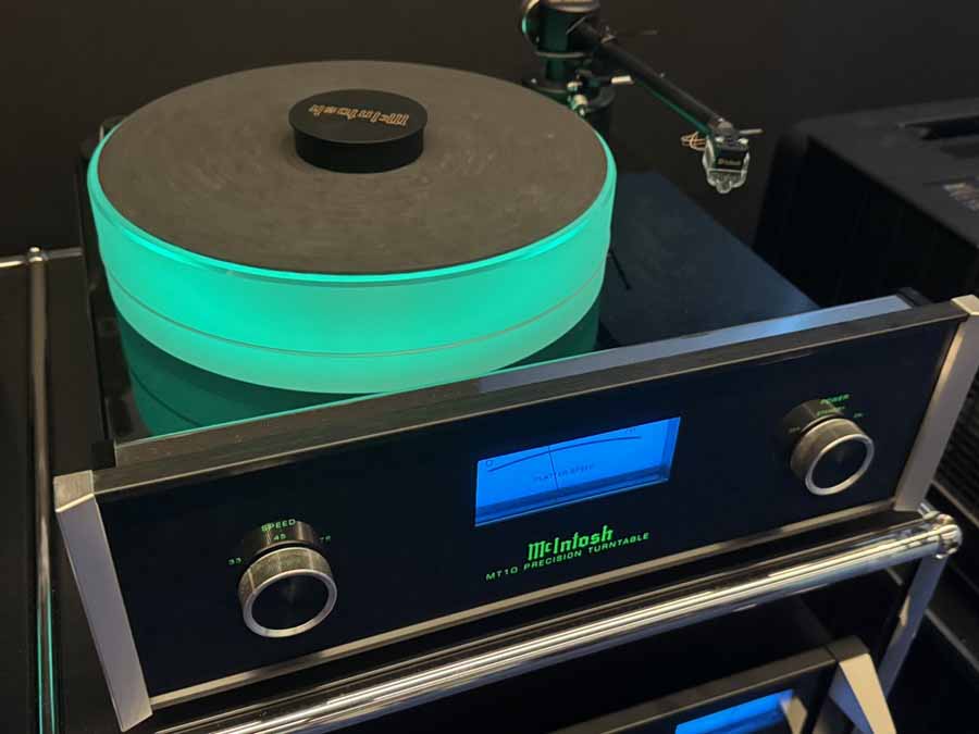 ALL THE MCINTOSH! With the exception of the 6 SVS subs (which were only being supplied with anything under 30Hz), this setup was McIntosh through and through. Sources here were the MT10 turntable, MCD12000 SACD player, but primarily the DS200 streaming DAC (which can also cover pre-amp duties if required). Here, the preamp was the 2-chassis C12000. Interestingly, the Controller box is how you change between sources, but all the sources are then connected to the second chassis. Power amplification used both the MC451 to drive the treble and mids, and the MC1.25KW monsters to power the bass.