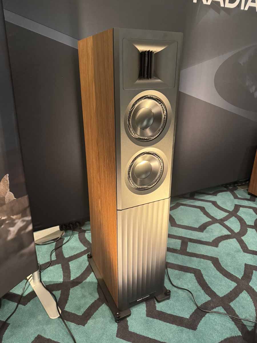 We’re here to evaluate the kit rather than the room, so I’ll focus on what I think the setup was actually doing. Another simple setup, featuring the one-box Lyngdorf 2210, and the brand new Radiant Acoustics Clarity 66 floorstanders. These are the brainchild of Lars Rispo, and utilise the Purifi that he was largely responsible for creating (along with the rest of the technical team at Purifi, of course). Unsurprisingly, given how much it’s the defining characteristic that Purifi pursues, these are very accurate, low-distortion speakers. They are also phenomenally punchy. The custom AMT tweeter uses an interesting front waveguide to aid dispersion as well and strikes exactly the right balance of detail without being overtly analytical or shrill-sounding.