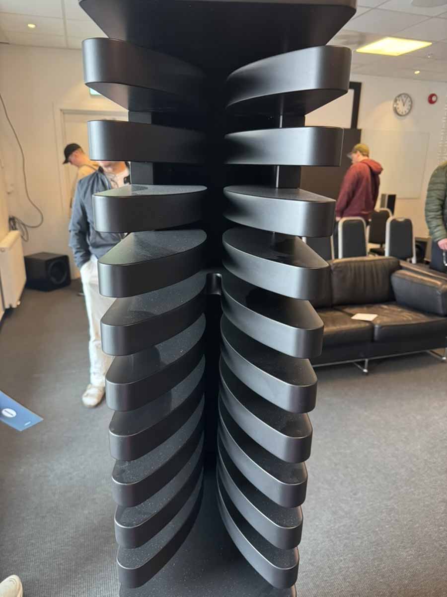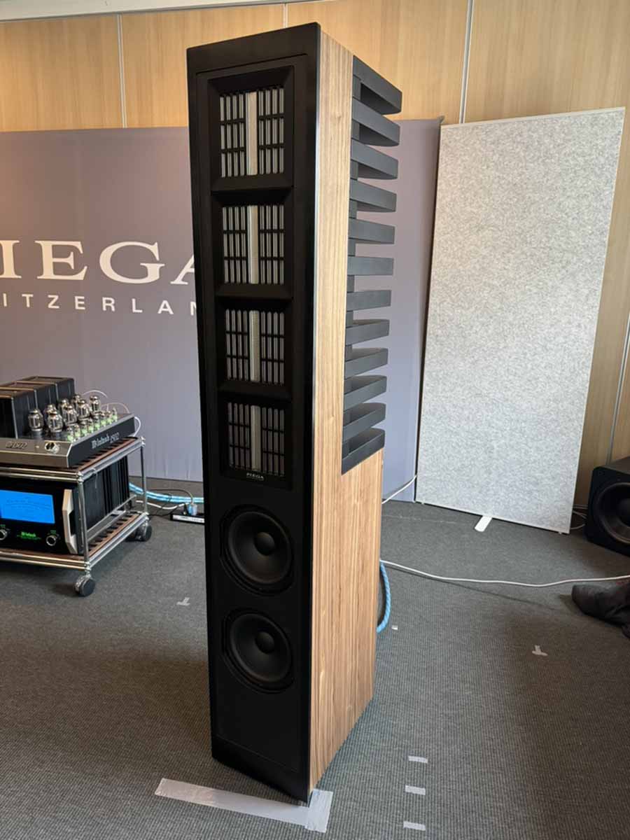 AudioCenteret seemed to have brought every single different Perlisten loudspeaker for static demo, including some truly gargantuan subs. This isn’t actually true because Perlisten produces a Biblical array of loudspeakers, so there is something perfectly tailored to every situation, but it there were more units there than most companies have in their entire speaker lineups. There’s some really quite interesting variation across the lineups, for example with some of the subs having a roughly cube form factor, but others that were really quite low profile boxes (or at least as low profile as you can make something with a 15″ driver). Similarly, there’s a mix of what I might call “lightly” horned tweeters, where the degree of wave guide is built into the cabinet, alongside models with a considerably larger, protruding horn structure.