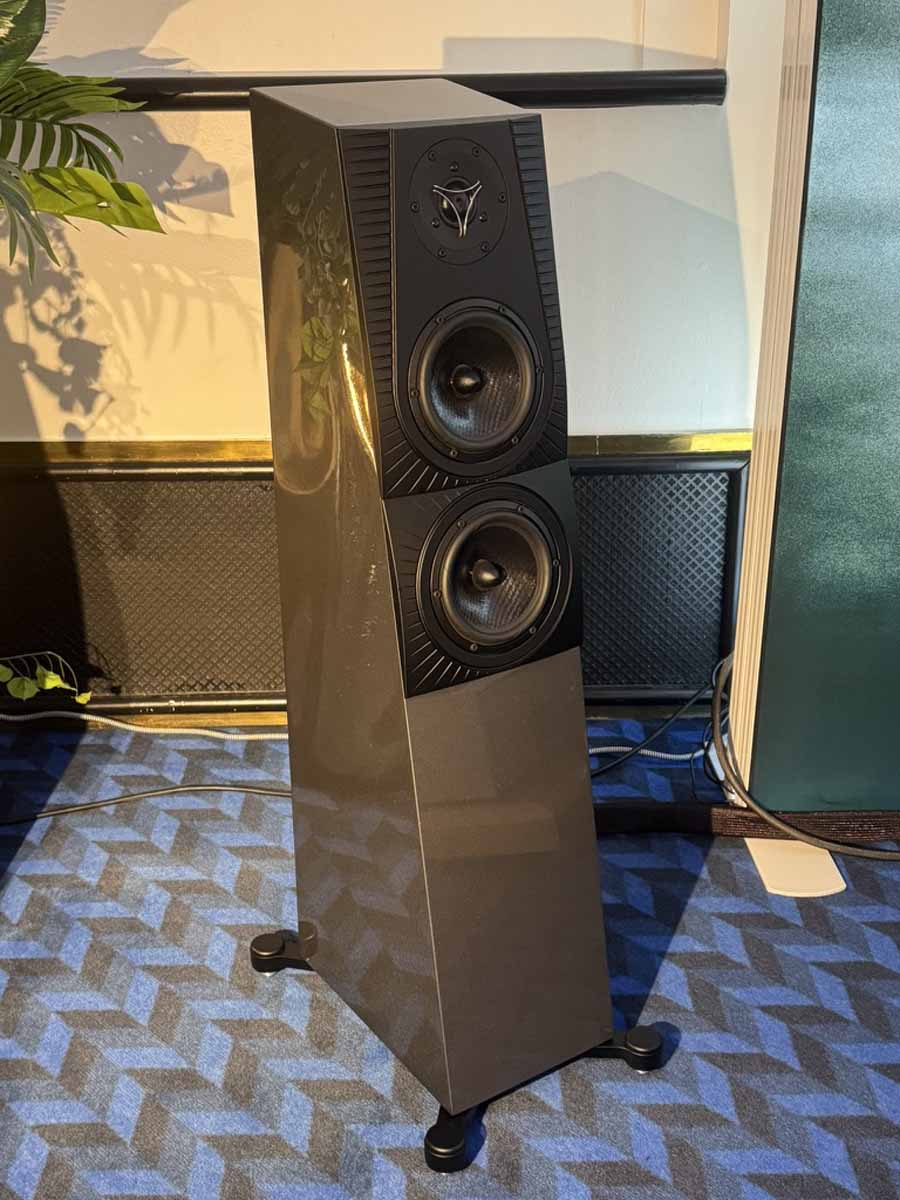 Sigberg is a completely new outfit for me, and they had two brand new products at the show. Playing were the larger Saranna floorstanders, which are active speakers, and feature a dual-concentric driver on the front, with further bass reinforcement coming from two additional 8″ drivers mounted on the rear. An Eversolo DMP-A6 was used as a streamer, and a Benchmark DAC3L was covering both conversion and pre-amp duties.