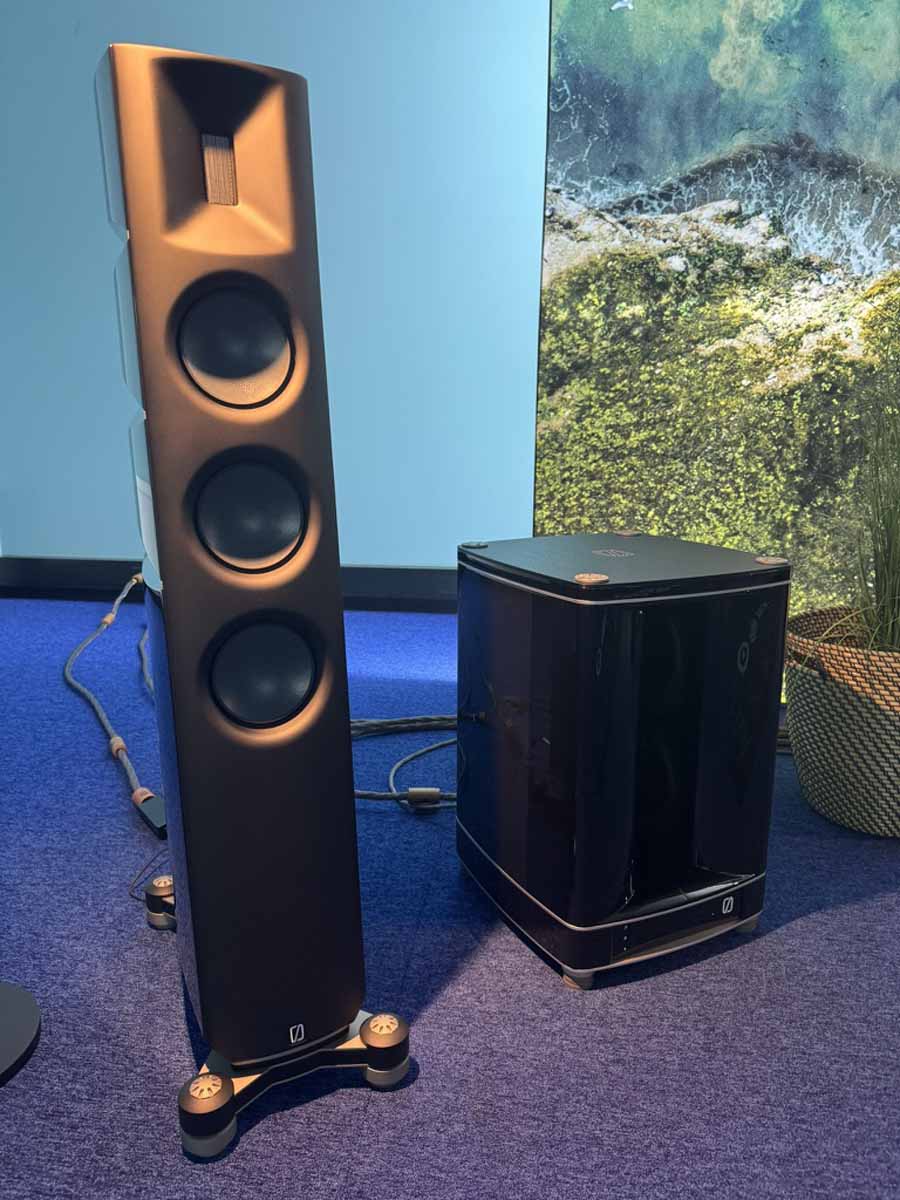 The second Soundgarden room was showing a pair of System Audio Silverback 60.2 DS floorstanders, which are the company’s new flagship. Each side features a tweeter, and then five 6″ drivers covering midrange and bass. The sound here was really quite clean. They definitely feel treble-forward, but not in a way that I found problematic, even if it’s not something I’d seek out. The System Audio system does give you options for things like DSP (as well as multi-room configuration), so it looks like there’s quite a lot of scope to customise to personal preference.