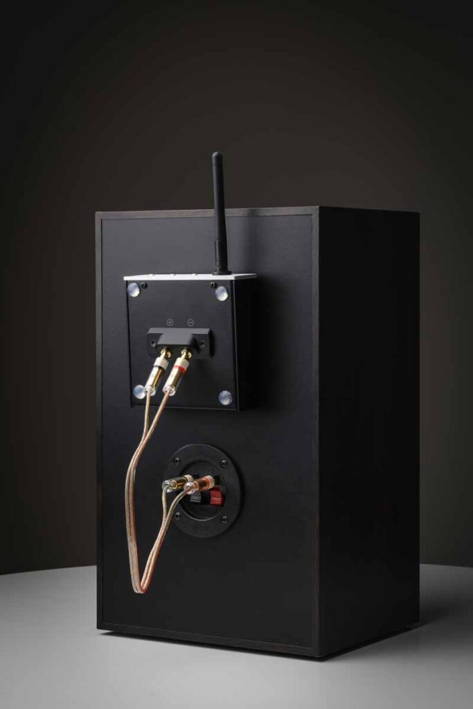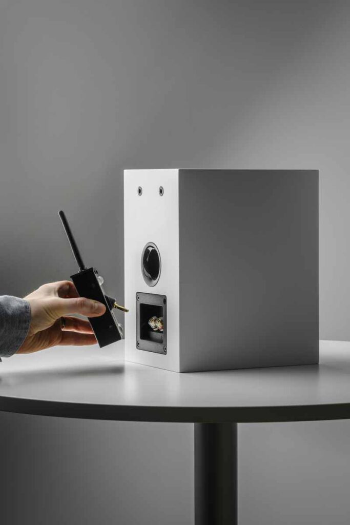 The Wireless Box E is primarily intended for use with Pro-Ject speakers but can also support third-party passive designs with suitable terminal layouts. Where direct mounting is not possible, an optional extension cable can be used. Typical applications include simplifying speaker placement, avoiding long cable runs and extending systems into additional rooms.