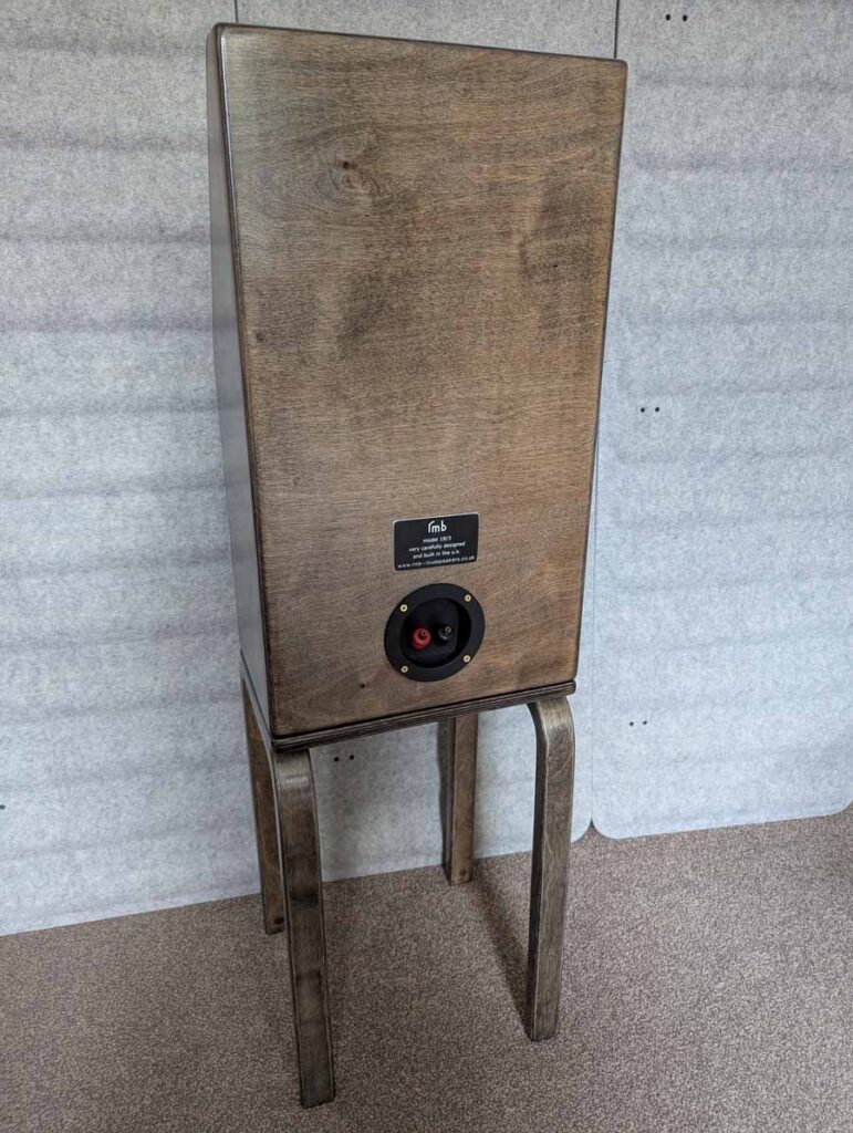 “Very carefully designed and built in the UK” is the heading on RMB’s website, a company making loudspeakers based in the lovely (and loudspeaker) sounding “Burley-in-Wharfedale” in West Yorkshire and run by Richard Best. The audiophile and car enthusiast makes it clear that his speakers are designed to sound best rather than just look good, a bit like my favourite cars. They are certainly unusual, and the feet on the stand-mounted speaker do remind me of the wooden chairs I sat on at junior school with their steam-shaped birch plywood curves. “We just believe that you should not have to accept lazy or boring visual design in something that is placed on view in your home!”