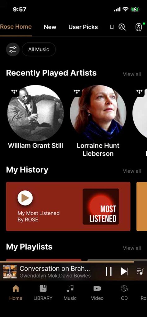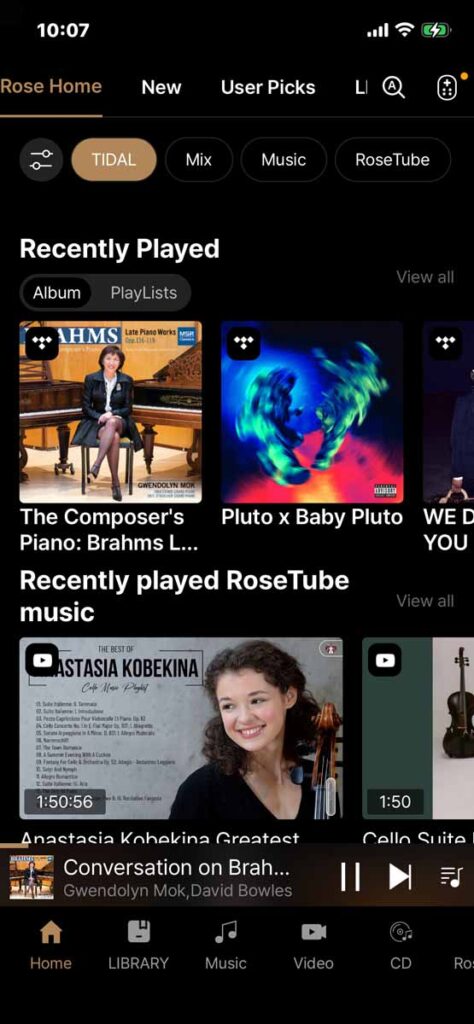 Content integration has been expanded within ROSE One. The app now supports TIDAL video content, enhanced Qobuz curation, and broader integration with RoseTube. A taste-based recommendation system provides automated suggestions for albums and artists, while label browsing and curated playlists offer additional discovery options. Classical music support has also been extended across multiple streaming services.