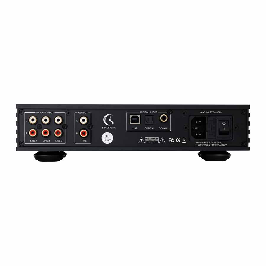 The Sendy Audio KYLIN is housed in a machined aluminium chassis intended to provide structural rigidity and heat dissipation for the Class A circuitry. The unit adopts a minimalist desktop design with a central volume control and front-panel headphone outputs. The overall construction is intended for long-term desktop use with headphones and digital sources. The Sendy Audio KYLIN combines digital decoding and headphone amplification in a single desktop component intended for use with a wide range of headphones and digital sources.