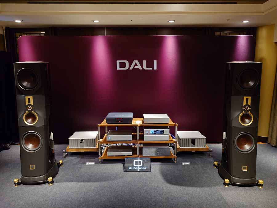 Room 212 showed how smooth an Atmos rig focused on music can be. An All-Estelon trio did the heavy lifting at the front of the stage. They used AURA floorstanders, an AURELLE centre, and an AURUS sub, all powered by a Denon home theatre amplifier. EAhibrid’s PureDC-ATV5000, a heavily modified Apple TV 4K on an acrylic base and powered by a dedicated PureDC-B1 battery/linear supply, was the system’s streaming heart. It served as the hub for movies and Dolby Atmos Music. DALI covered the surround and height channels, giving a full 7.1.4 layout that wrapped music around the room. It was pretty cool!