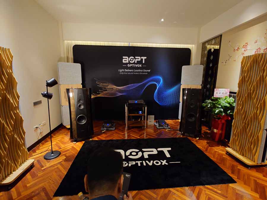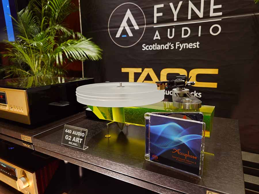 Taisheng Audio kept things simple but very classy in V106. They built a single, no-nonsense system around Fyne’s F1-8S loudspeakers and a full Accuphase front end. The PS-1250 power supply powered an A-80 Class A power amplifier. The C-3900S preamp and C-57 phono stage controlled it. The DP-770 SACD player played discs, and the G2 Art turntable with the AC-6 MC cartridge played vinyl. All of this was firmly supported on TAOC CSR/3R racks. The result looked like a “grown-up” system: clean, organised, and clearly made for people who care more about long-term musical enjoyment than bragging about how many boxes they have.