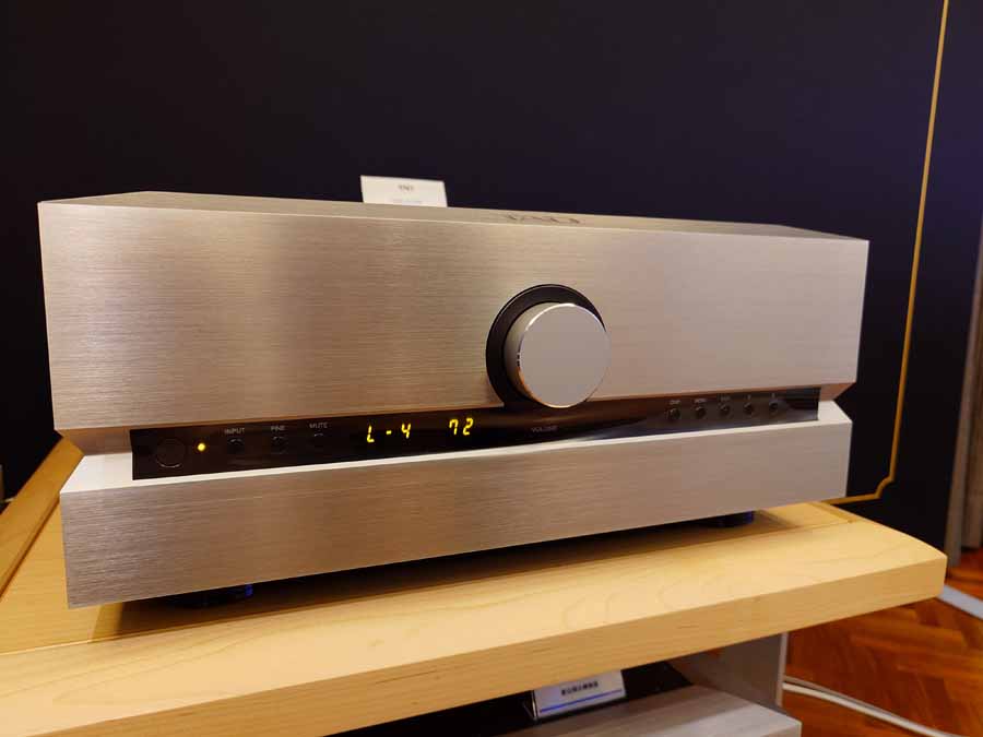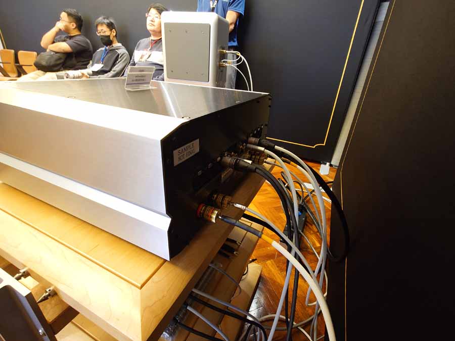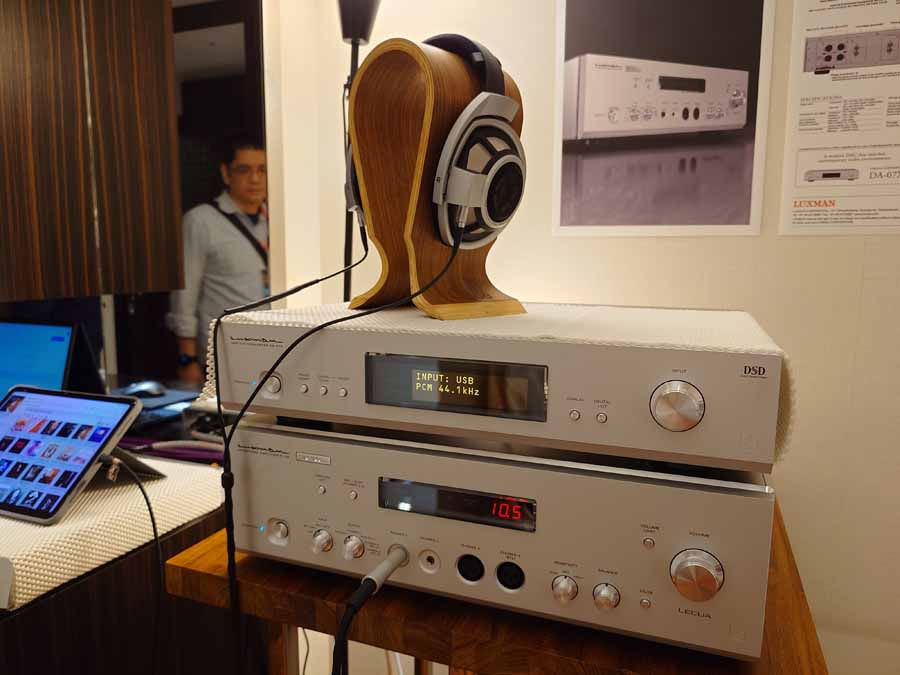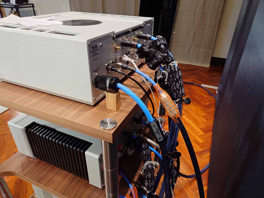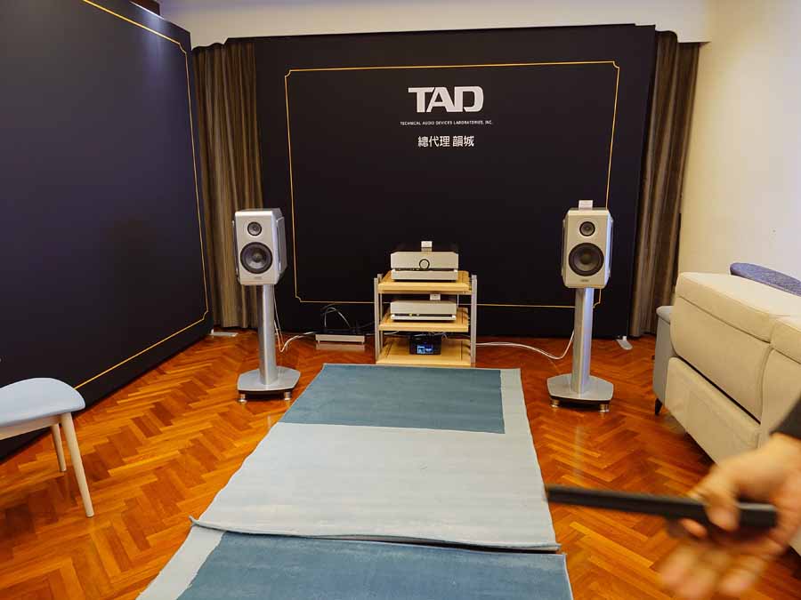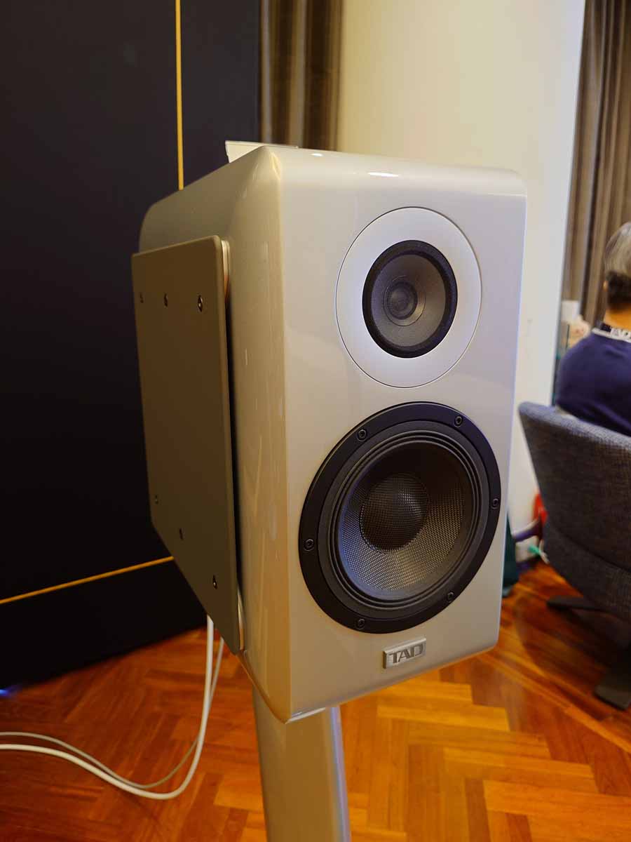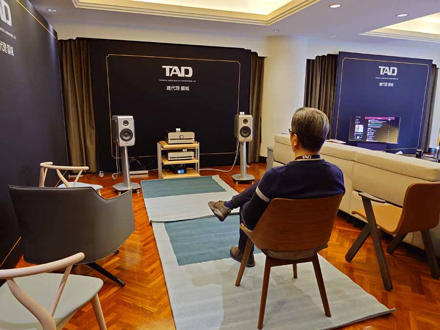 TAD really spoilt visitors in V107. The much-anticipated TAD-A1000 integrated amplifier made its world debut here, personally introduced by TAD CEO Mr Shinji Tarutani in a setup that appeared civilised and apartment-friendly: the gorgeous ME1TX standmounts, the DA-1000 DAC, and a humble Bluesound icon streaming Spotify Lossless.