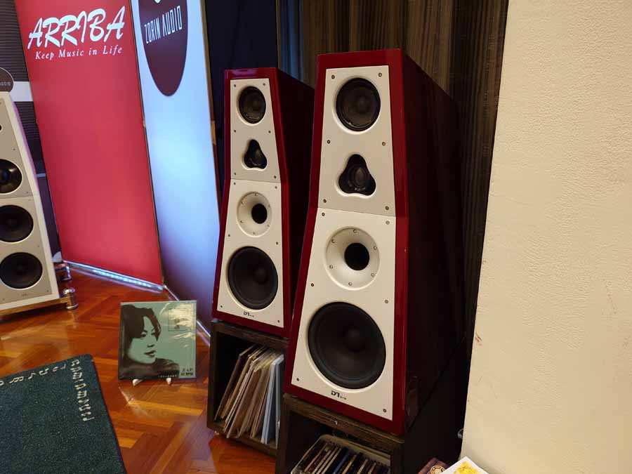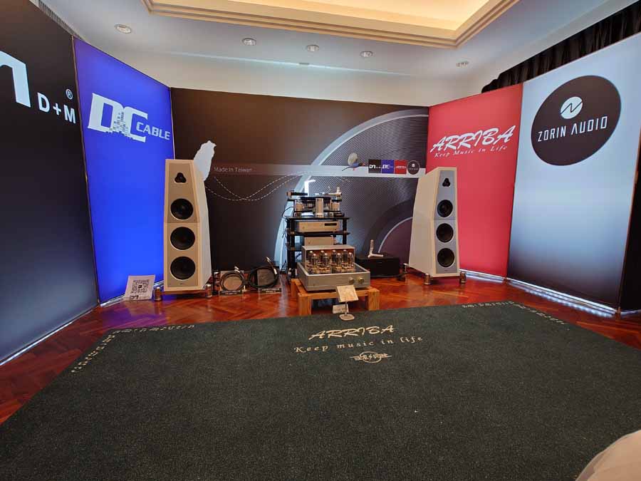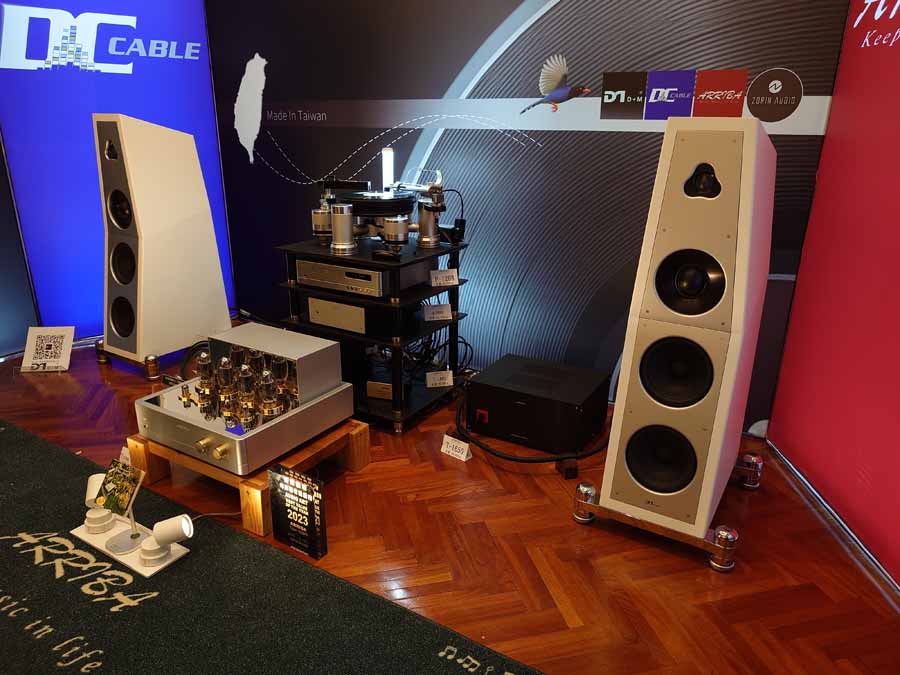 On static display, DM D+M’s Royal Knight standmounts drew plenty of glances with a glass‑dome 1” tweeter and 6.5” mid/bass (50 Hz–40 kHz), built from chunky Nordic birch ply with a 40 mm front baffle and wired internally with DC Cable OCC. Arriba showed off its transformer‑winding chops with samples and the new Juno 32SE flagship single‑ended integrated, running parallel KT150s for 30 W per channel, sporting a fresh, curvier industrial design and a bespoke glass tube cover shaped by an automotive glass factory – those bright red heatsinks didn’t hurt, either. Zorin rounded things out with TP‑S5 and TP‑S2 turntables and additional tonearm options, turning the static side of the room into a mini design gallery. This all‑Taiwanese alliance felt fresh and ambitious, and it’s exactly the kind of collaboration that could (and should) push these brands further onto the international map.